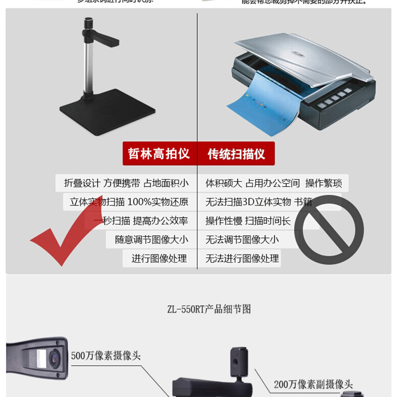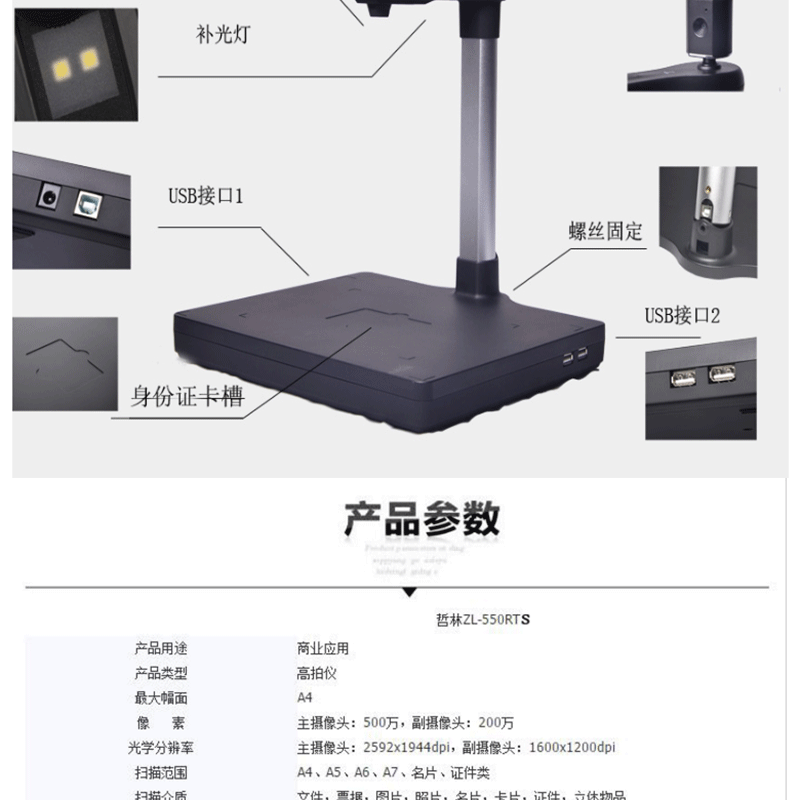 哲林((Zhelin)) ZL-550RTS 雙攝像頭高拍儀 500萬(wàn)像素 LED光源