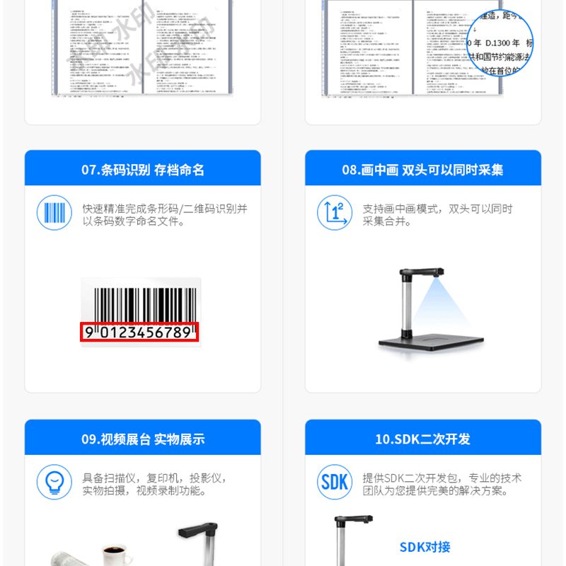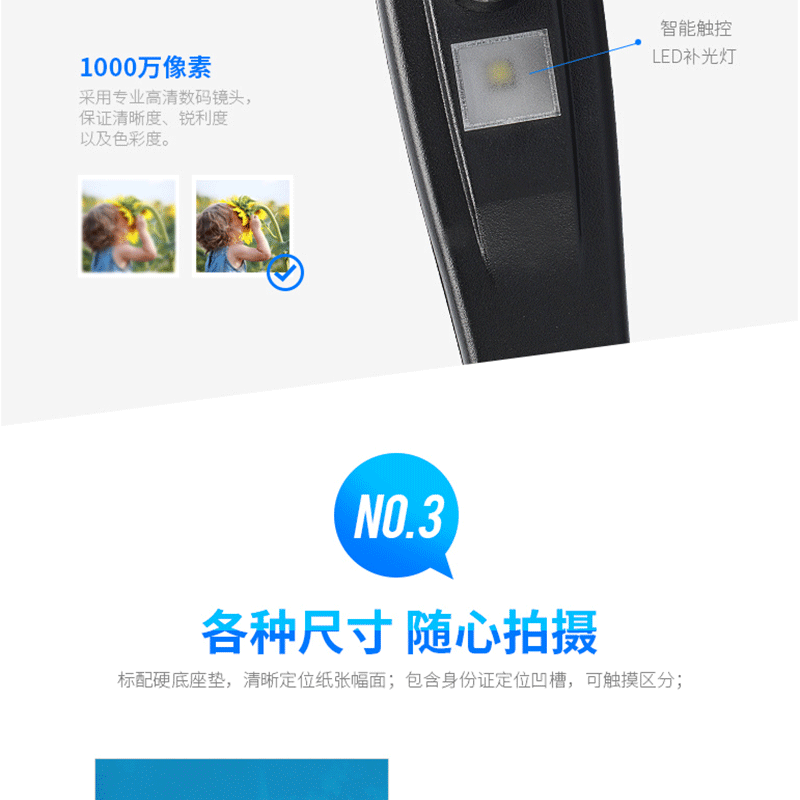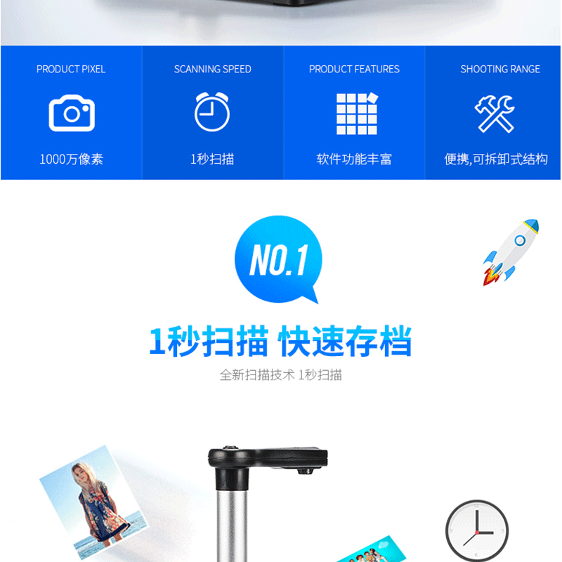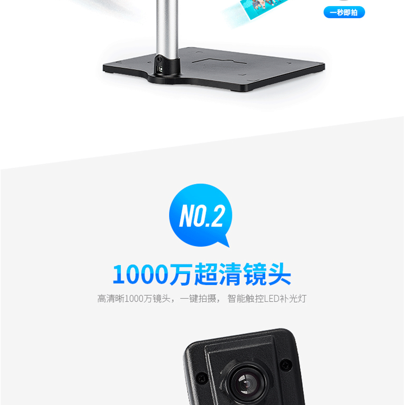 可拆缷結構設計 硬質文稿臺 條碼識別功能 1000萬像素 ?
