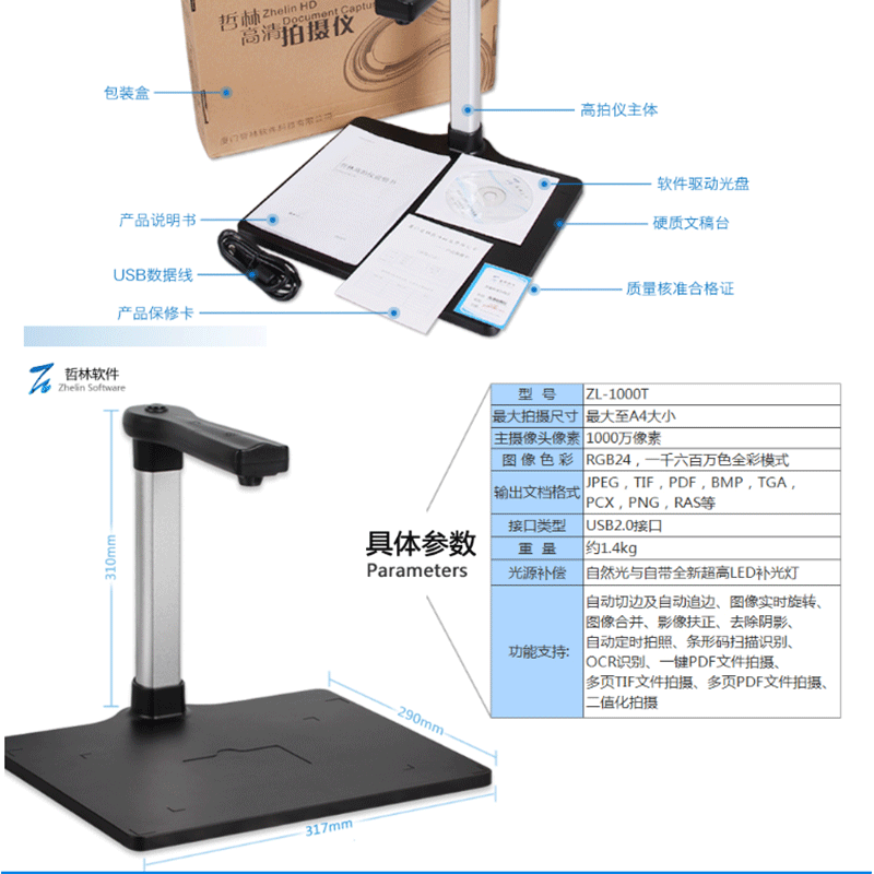 哲林((Zhelin)) ZL-1000T 高拍儀 1000萬像素 固定底座