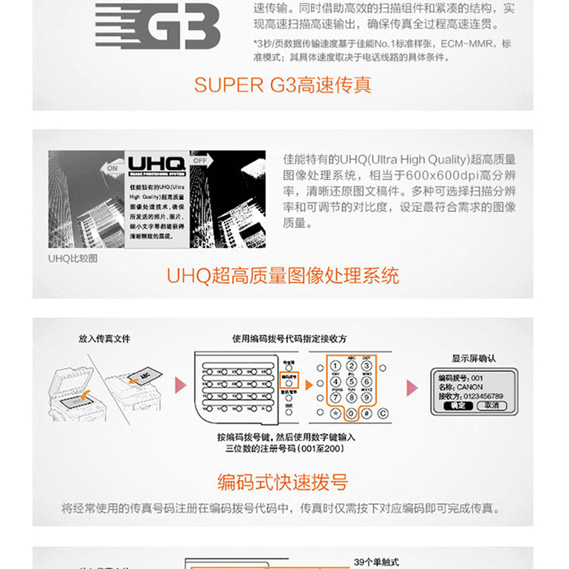 傳真速度3秒/頁 5行中文顯示屏 大容量傳真內(nèi)存 SUPER G3高速傳真 ?