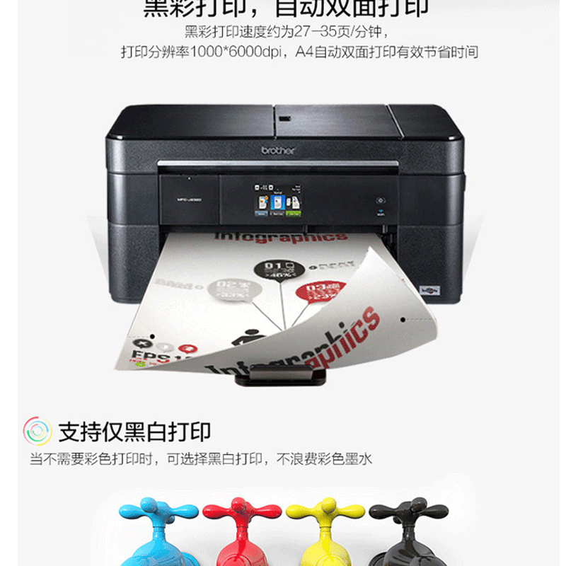 自動雙面打印,2.7英寸彩色觸摸屏,打印速度A4:黑白35頁/分鐘 彩色27頁/分鐘 ?