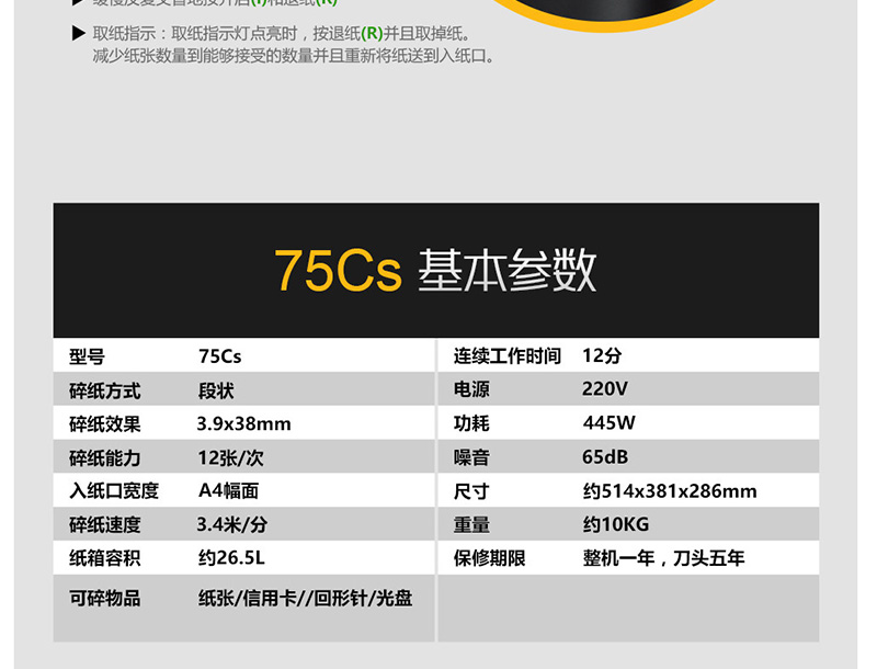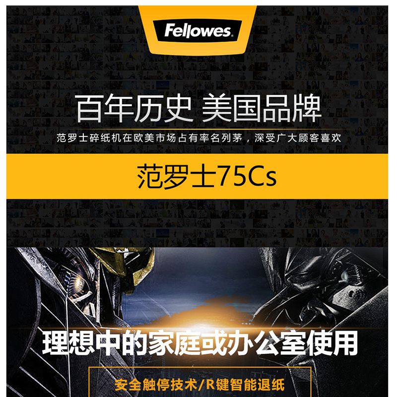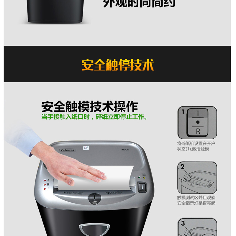 范羅士(Fellowes) 75Cs 辦公家用智能碎紙機(jī)(強(qiáng)勁不卡紙/安全觸停/節(jié)能/單次碎紙12張)