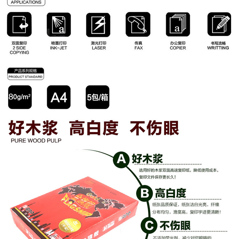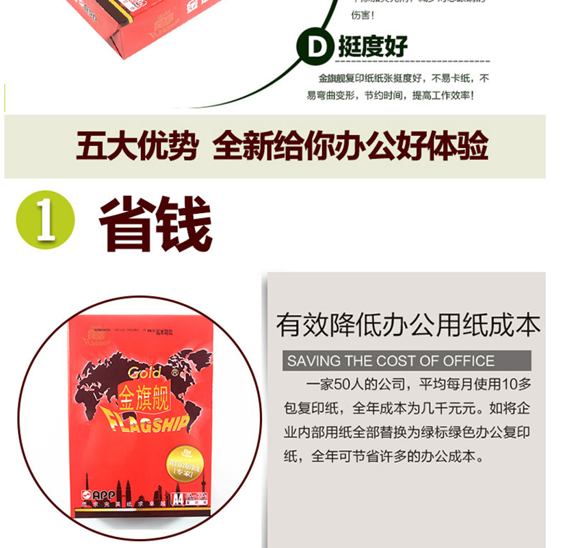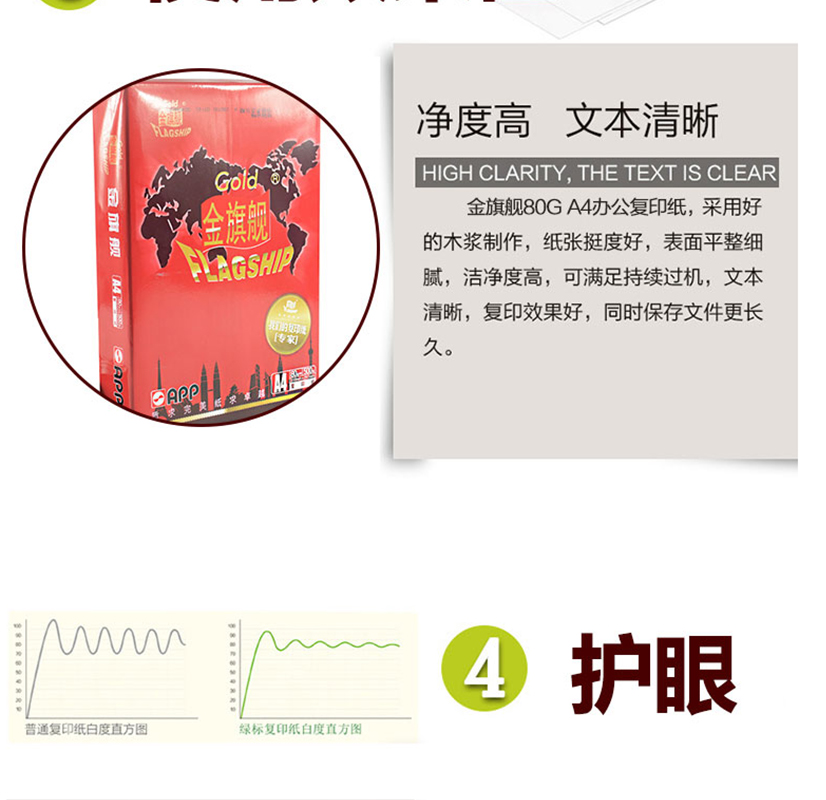 金旗艦 A4 80G 復(fù)印紙 500張/包 (8包/箱)