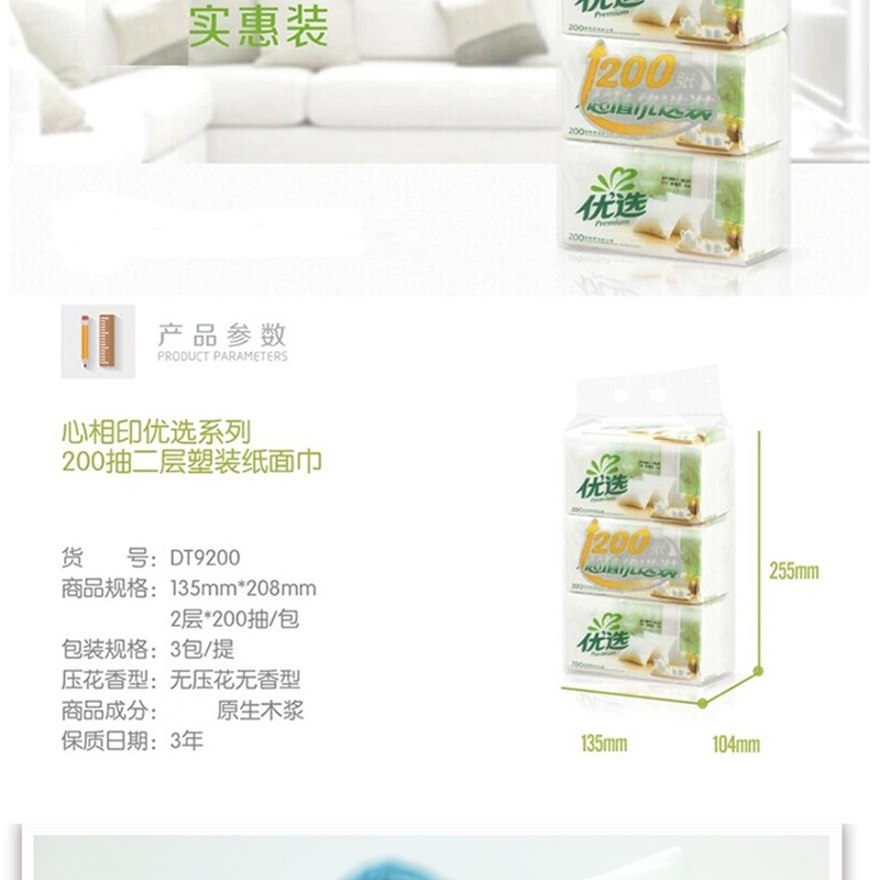 心相?。∕ind Act Upon Mind) DT9200 優(yōu)選系列2層面巾紙200抽x3包/提