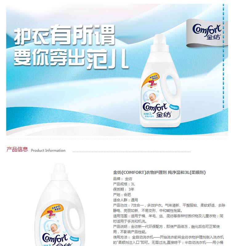 金紡(COMFORT) 衣物護(hù)理劑 柔順劑 純凈溫和3L
