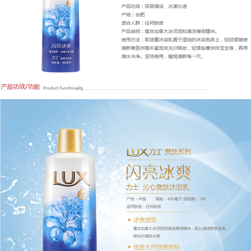 力士(LUX) 爽膚沐浴露閃亮冰爽400ml