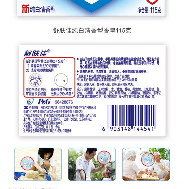 舒膚佳 香皂純白清香型115g 單塊裝
