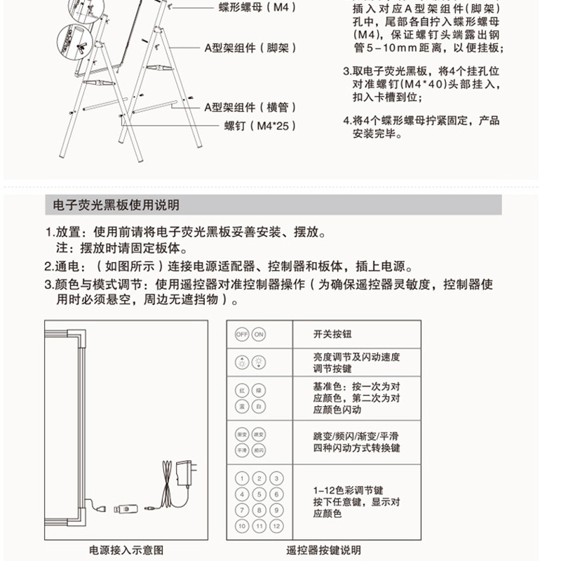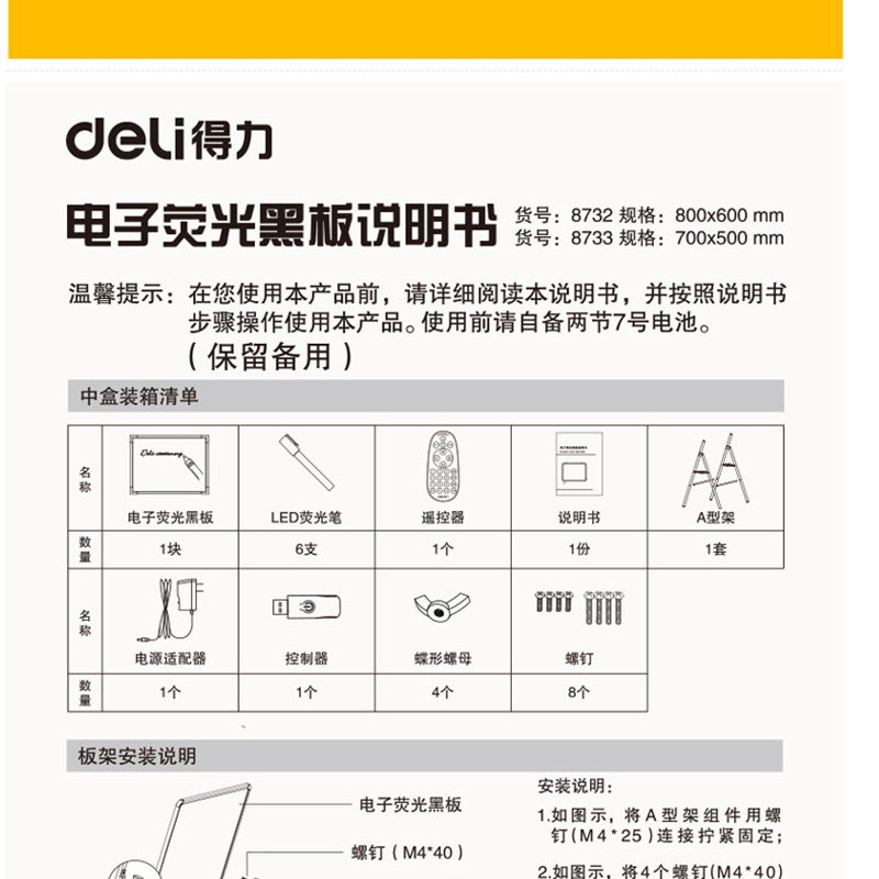 得力(deli) 8733 50*70cm帶架子電子熒光黑板/白板 LED燈手寫廣告牌/熒光板