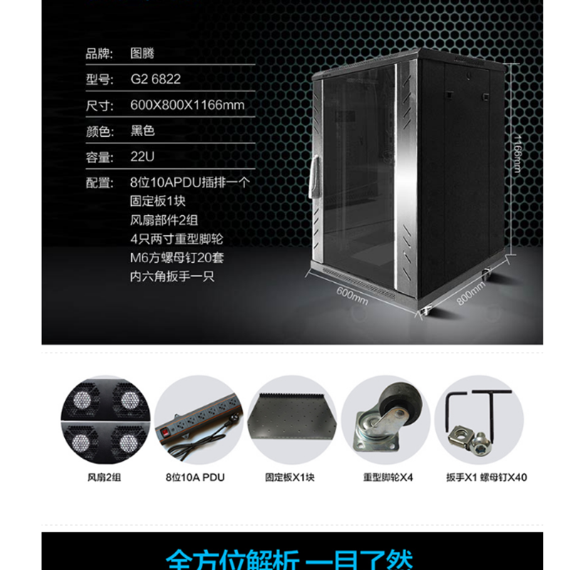 圖騰(TOTEN) G2.6822 網(wǎng)絡(luò)機(jī)柜 玻璃前門鈑金后門 19英寸標(biāo)準(zhǔn)