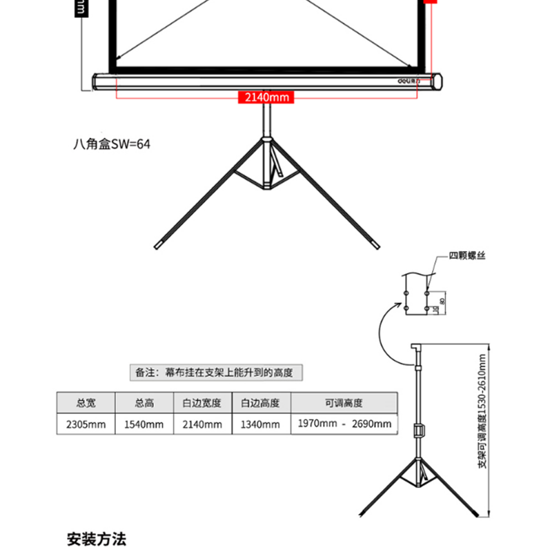 得力(deli) 50495 100英寸 16:10支架投影幕布投影布 家用投影儀幕布