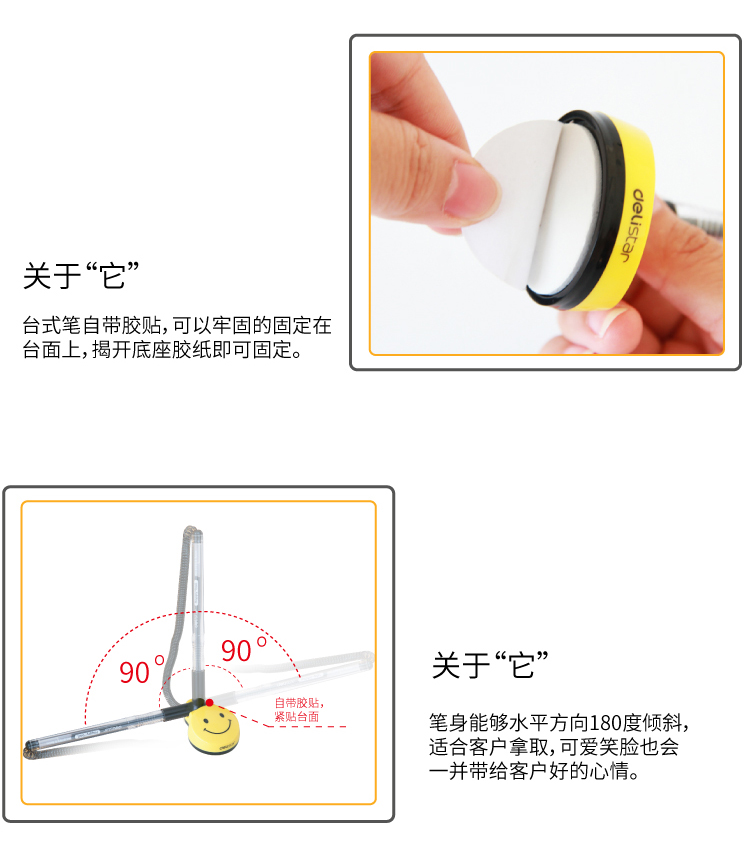 得力(deli) 6793 微笑臺(tái)筆/臺(tái)式中性筆 0.5mm 黑色 單支裝