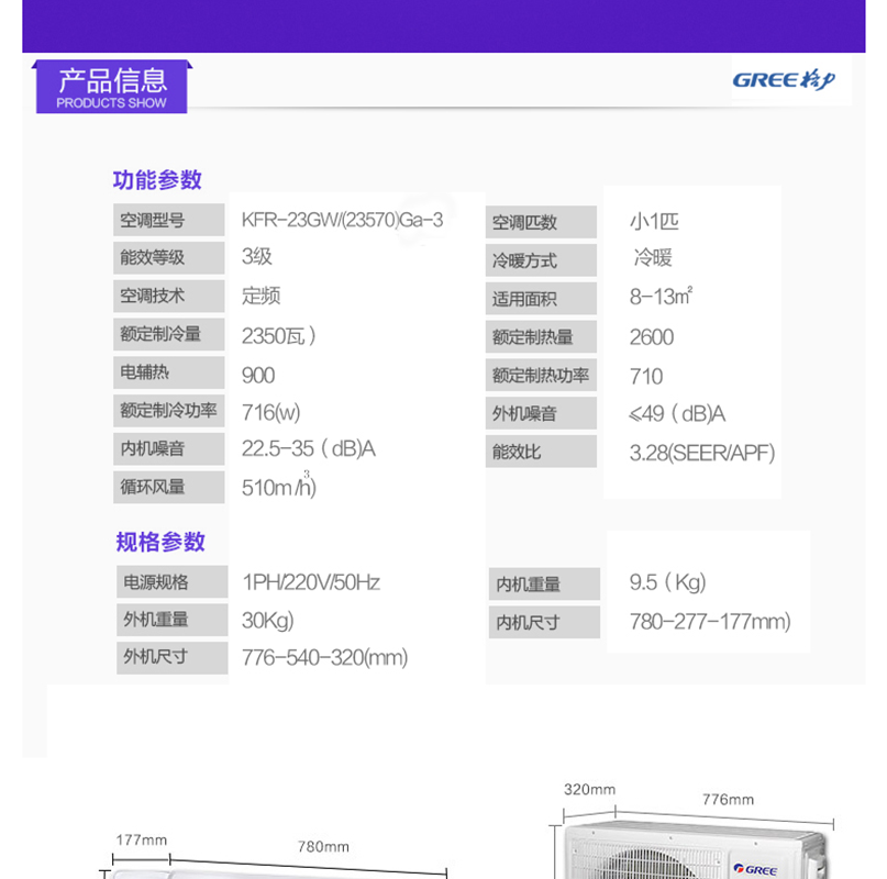 格力(GREE) KFR-23GW/(23570)Ga-3 小1匹空調(diào)