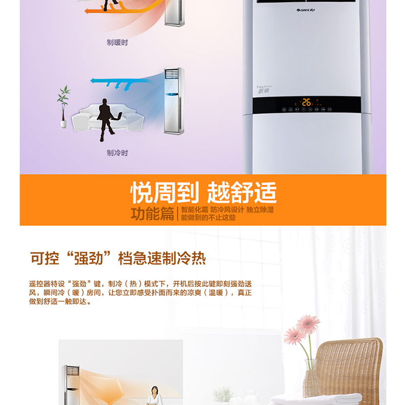 經(jīng)典方柜造型,強(qiáng)勁鍵功能設(shè)計(jì),快速冷暖輕輕一點(diǎn),立體送風(fēng)地毯式制熱溫暖從腳開始! ?