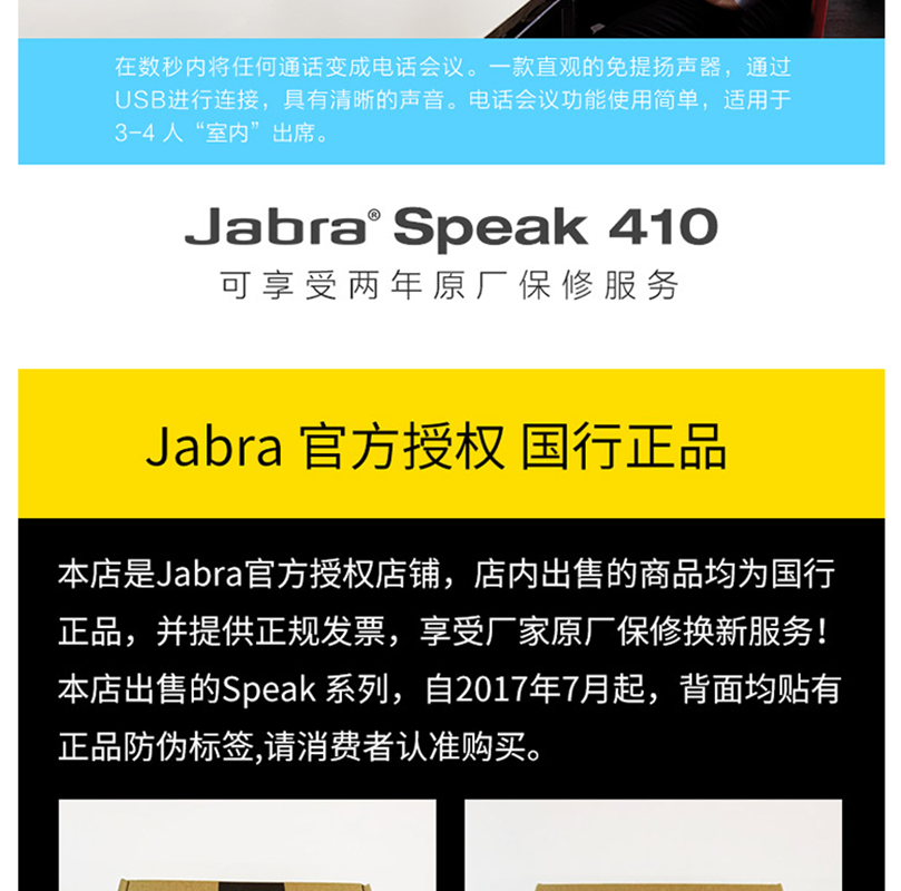 捷波朗(Jabra) SPEAK 410 音頻會議 免提通話揚聲器/音響 黑色