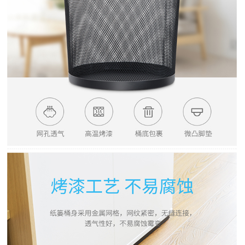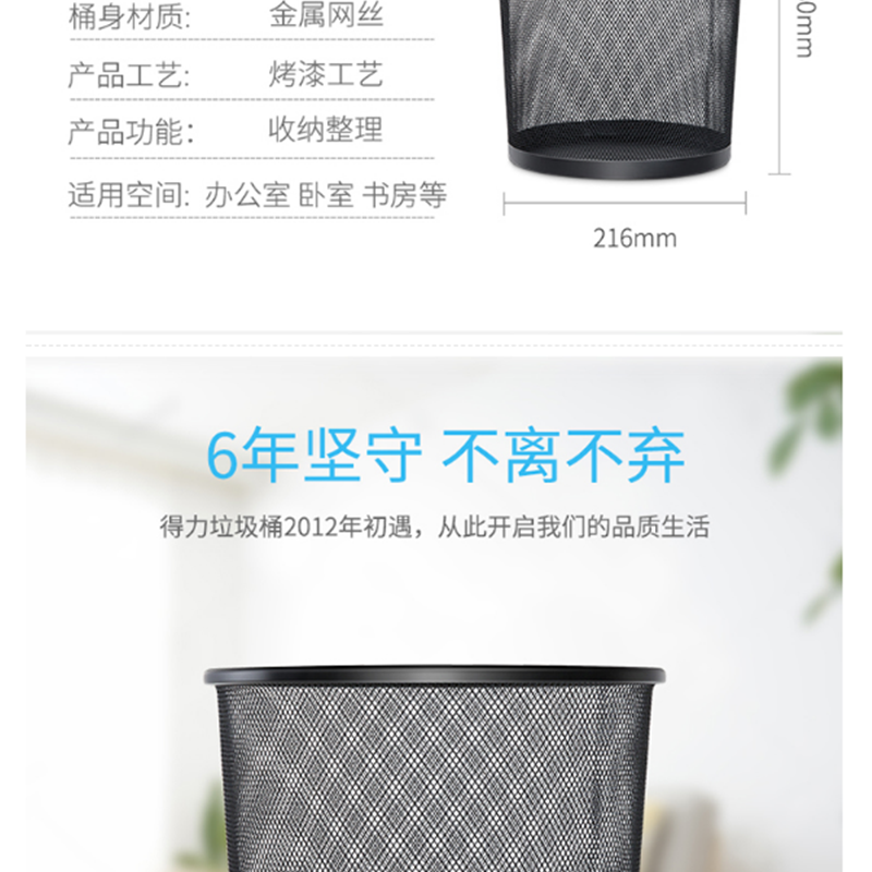 得力(deli) 黑色9190 26.6cm中號(hào)金屬網(wǎng)狀圓紙簍 辦公家用垃圾桶