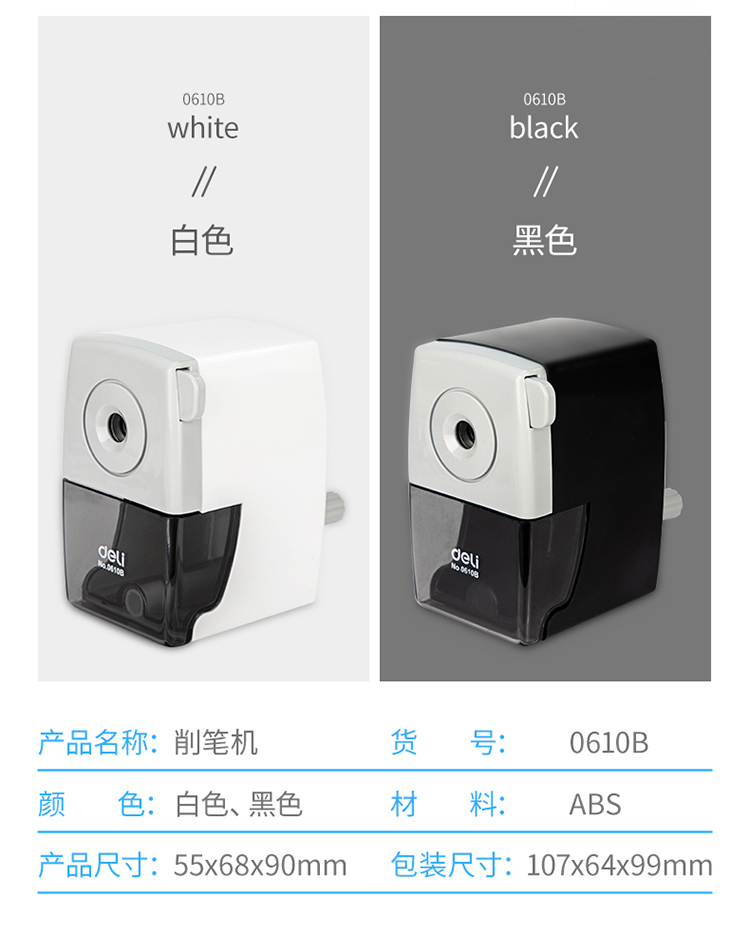 得力(deli) 0610B 辦公削筆機(jī)顏色隨機(jī) 金屬固定支架