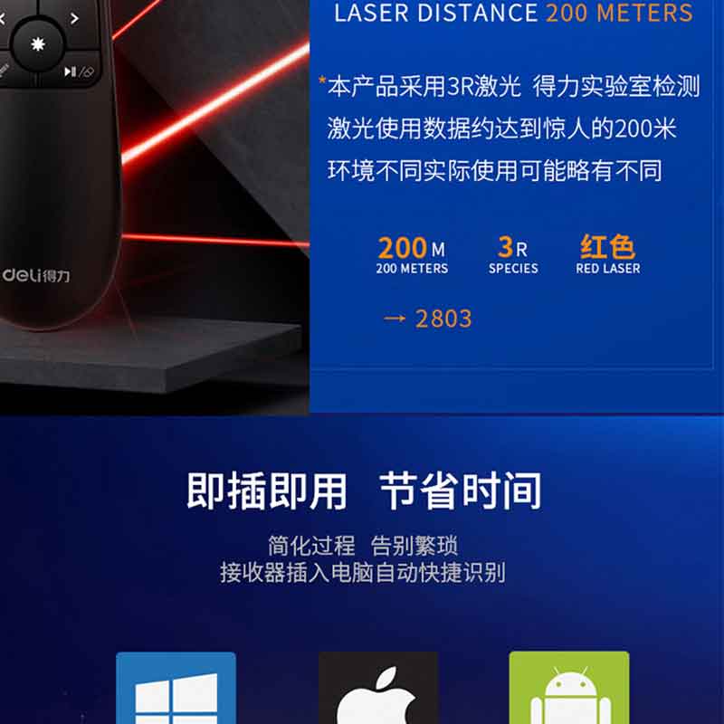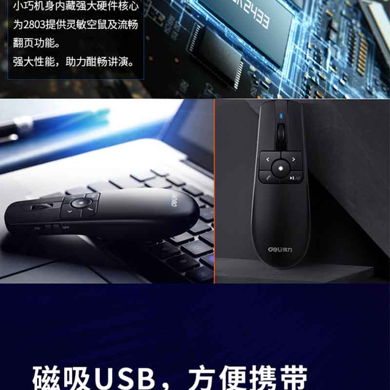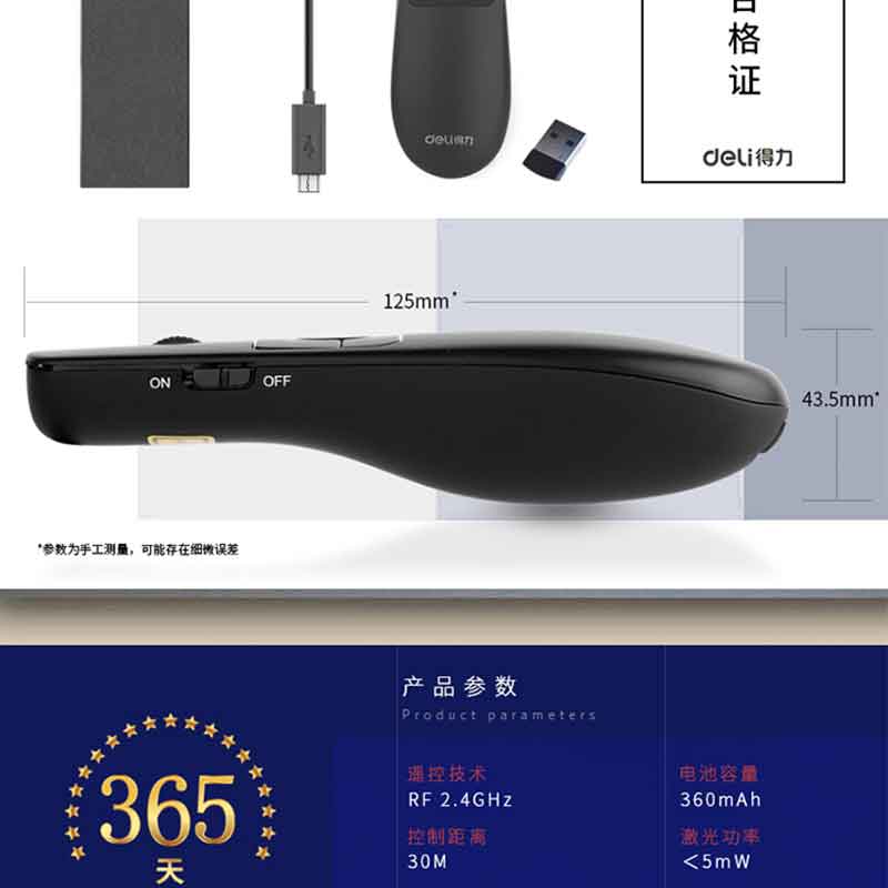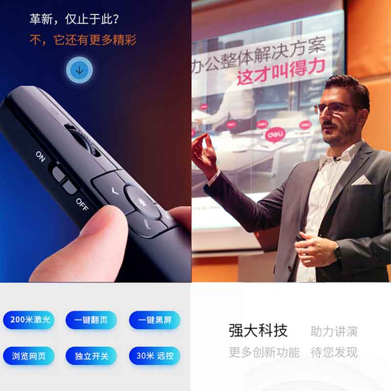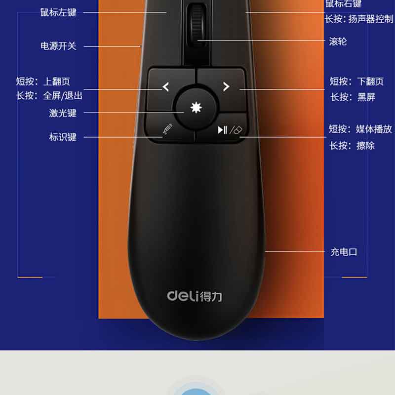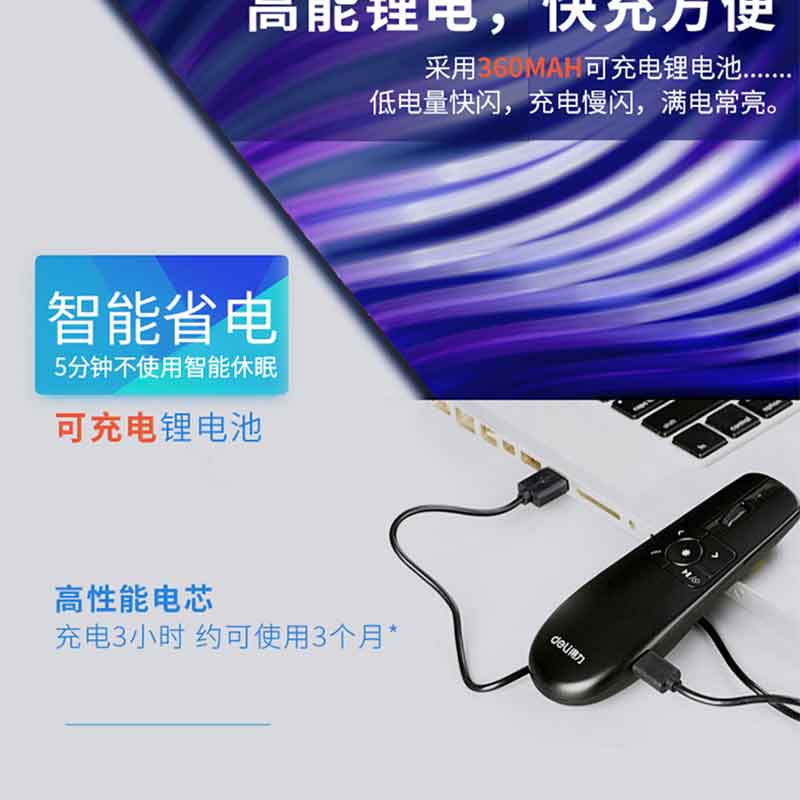得力(deli) 2803 空中飛鼠 可充電T激光翻頁筆 PPT無線演示器 機(jī)頂盒鼠標(biāo) 紅光