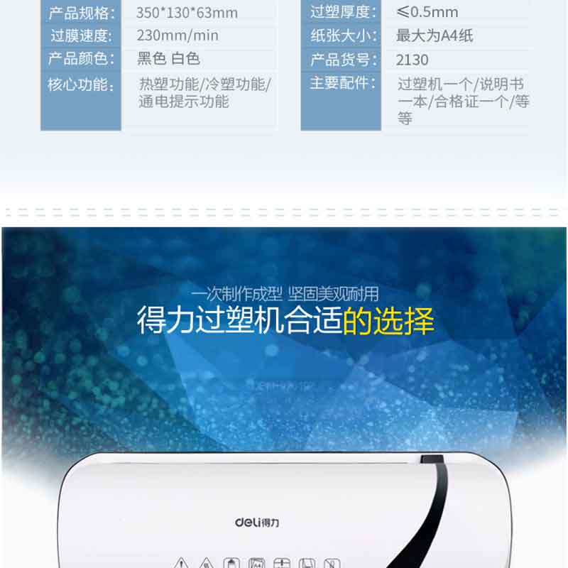 得力(deli) 2130 塑封機(jī) 簡潔時尚 靜音型