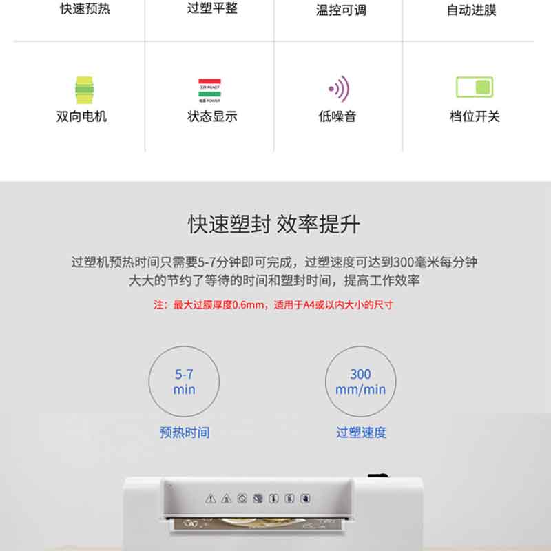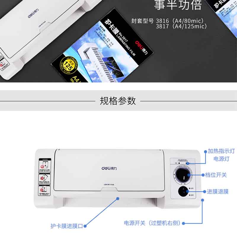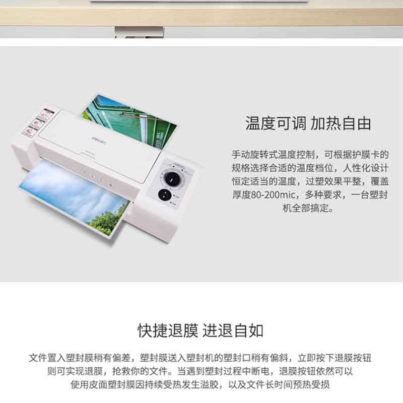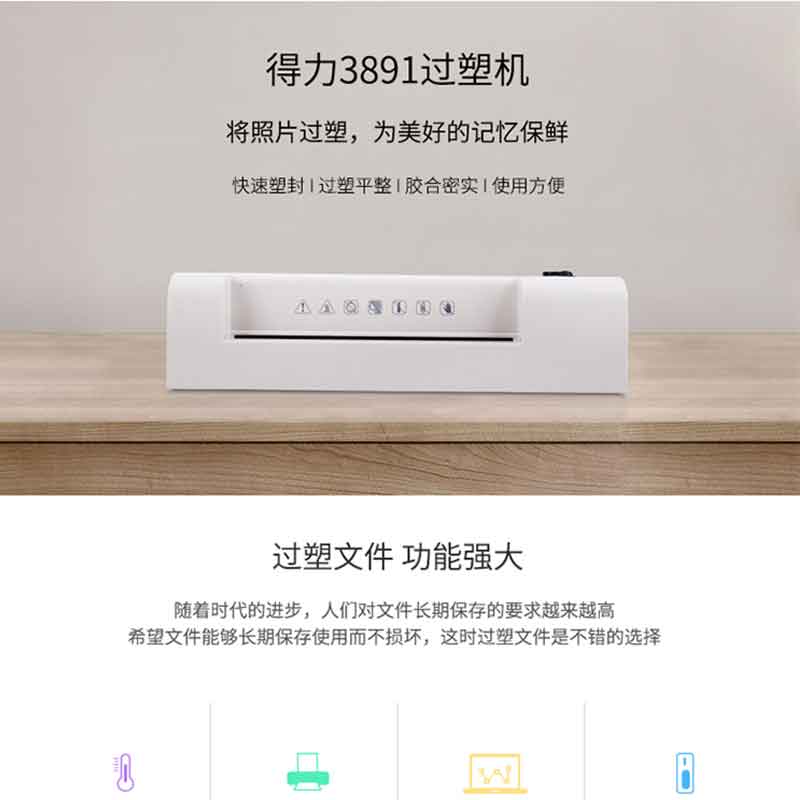 得力(deli) 3891 適用A4靜音設(shè)計(jì)時(shí)尚簡(jiǎn)潔塑封機(jī)/過(guò)塑機(jī) 雙向電機(jī) 灰色