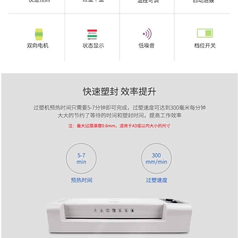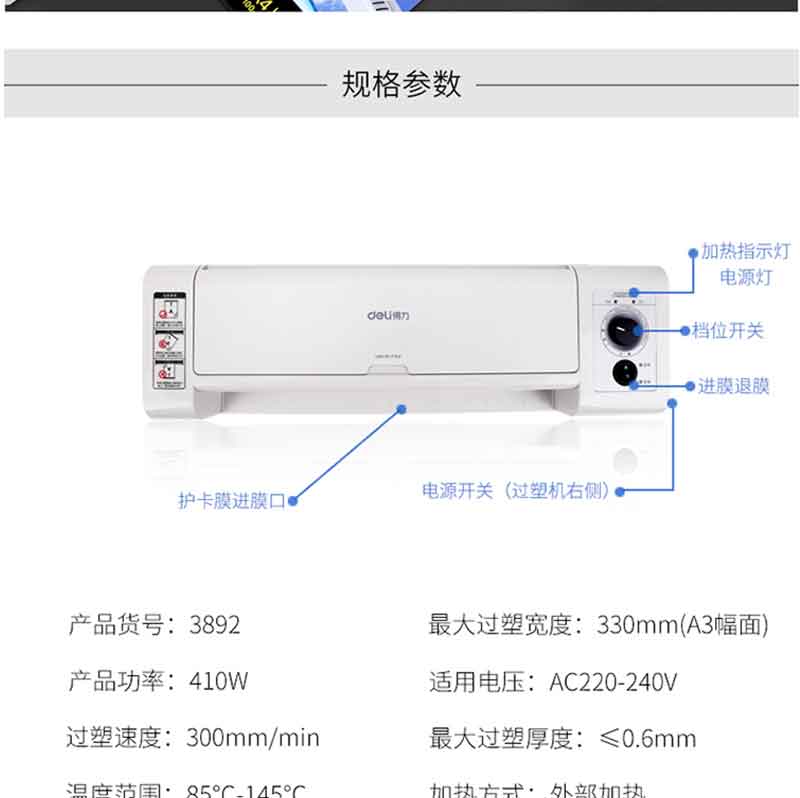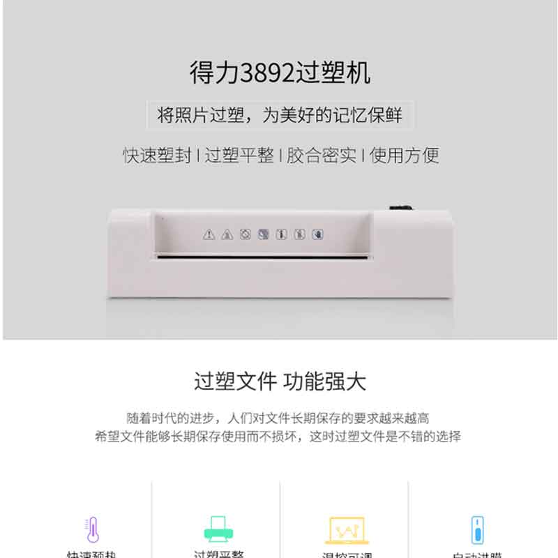 得力(deli) 3892 適用A3靜音設(shè)計(jì)正反轉(zhuǎn)功能塑封機(jī)/過塑機(jī) 冷裱/熱裱 灰色