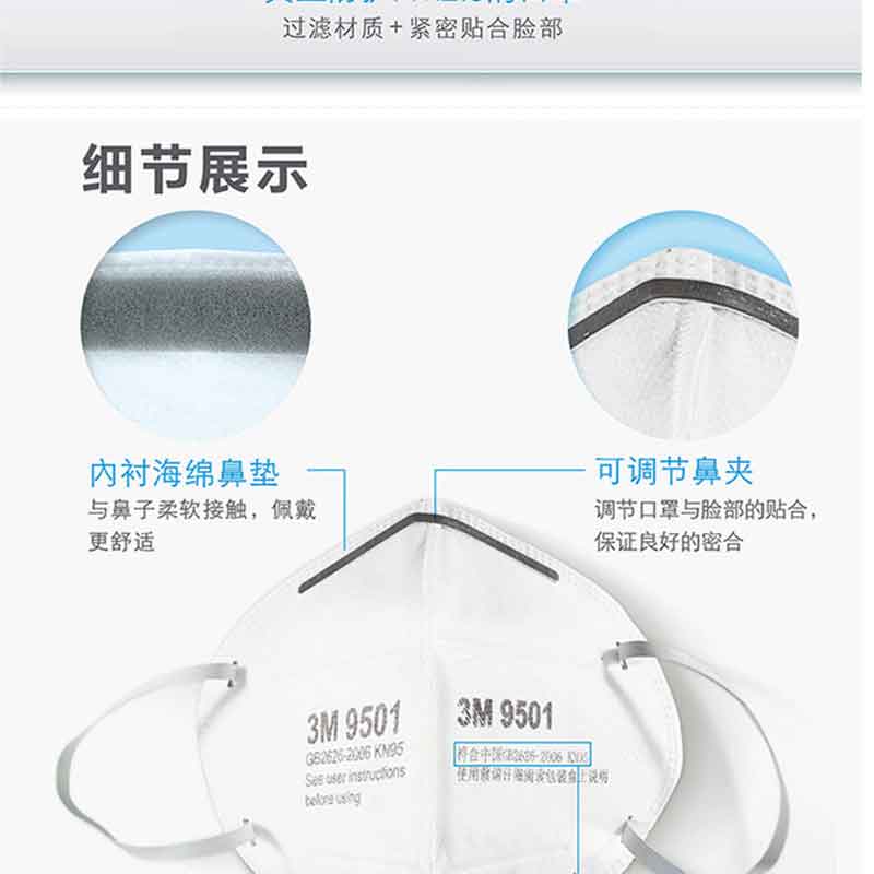 3M 9501 KN95 耳戴式防顆粒物口罩 防塵 防霧霾口罩(5只/包)