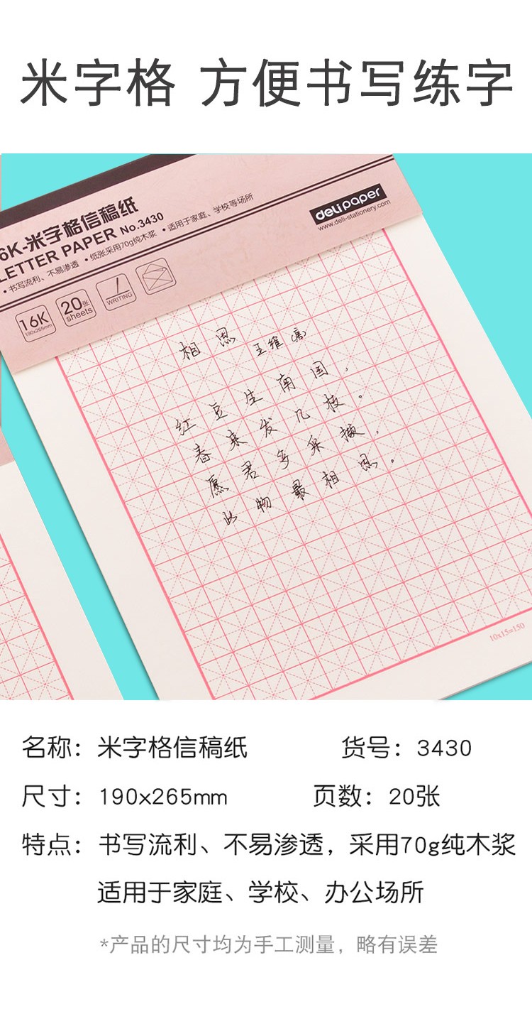 得力(deli) 3430 米字格信稿紙(白)(本)