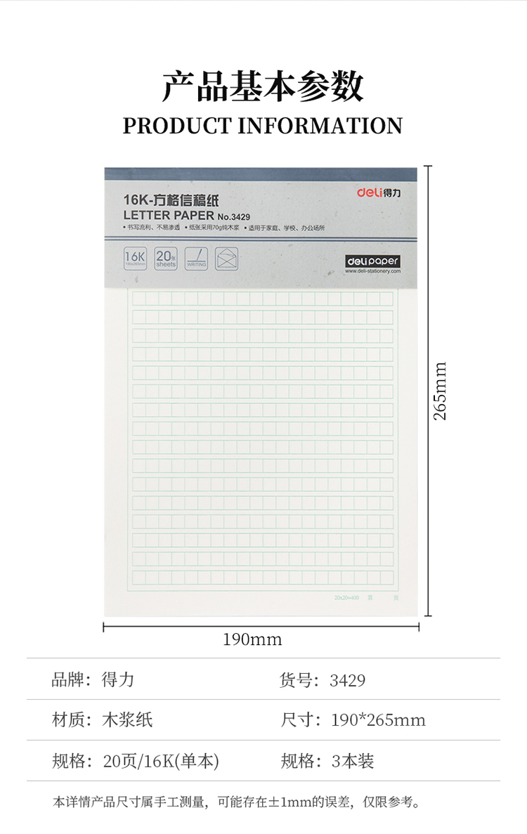 得力(deli) 3429 方格信稿紙-70g-266*190mm(本)