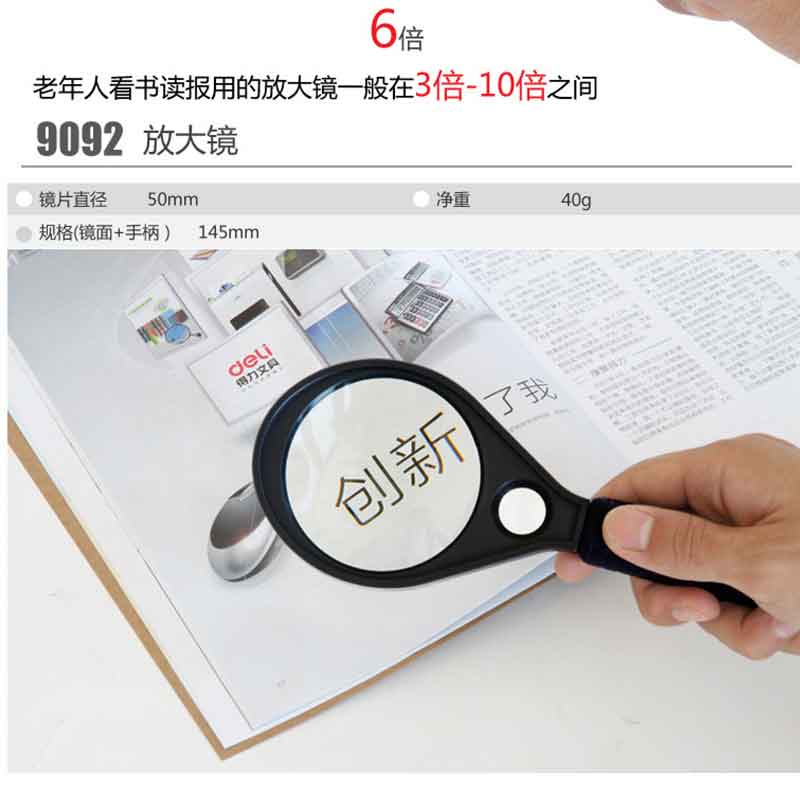 得力(deli) 9090 實(shí)用放大鏡(帶輔助放大鏡) Ф75mm