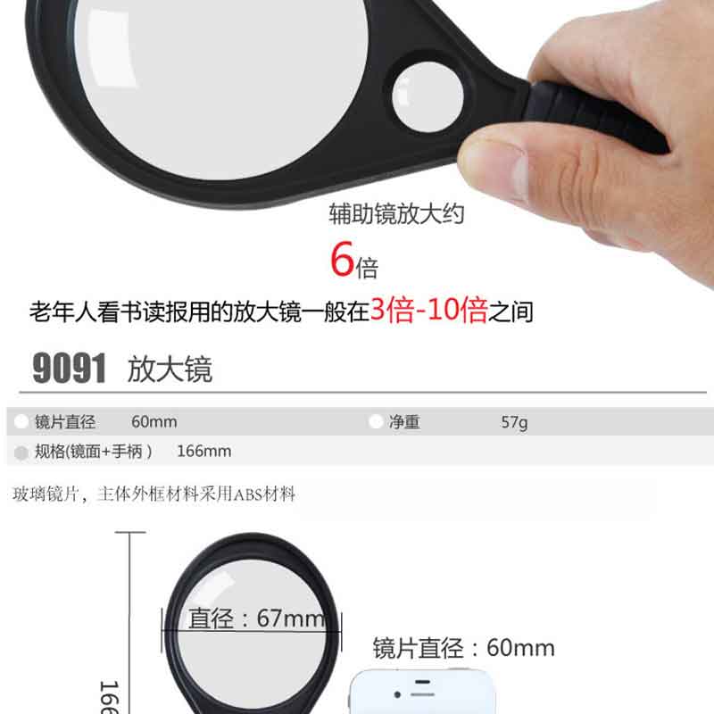 得力(deli) 9091 實(shí)用放大鏡(帶輔助放大鏡) Ф60mm