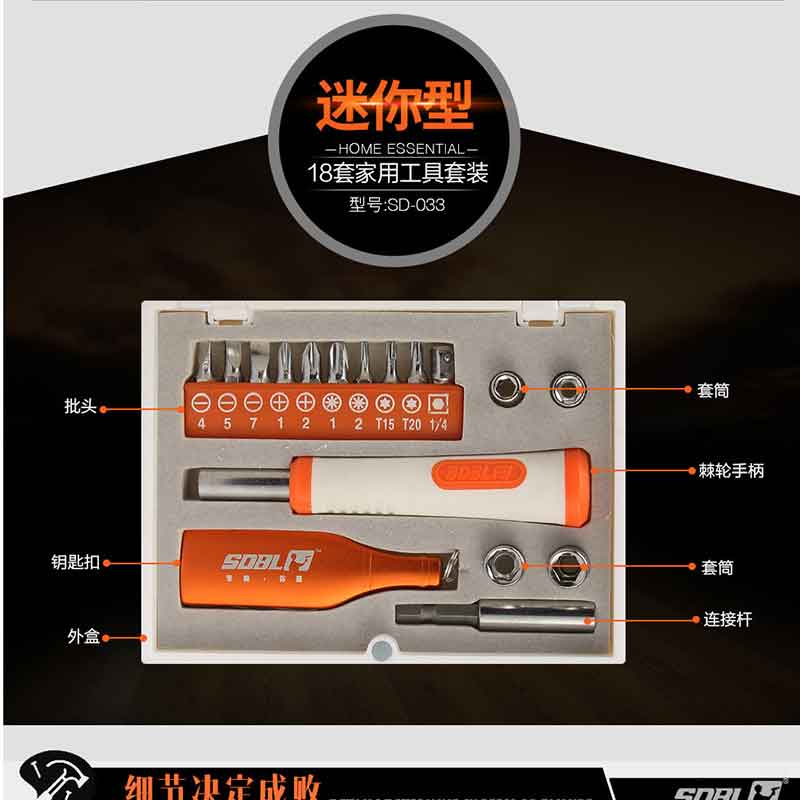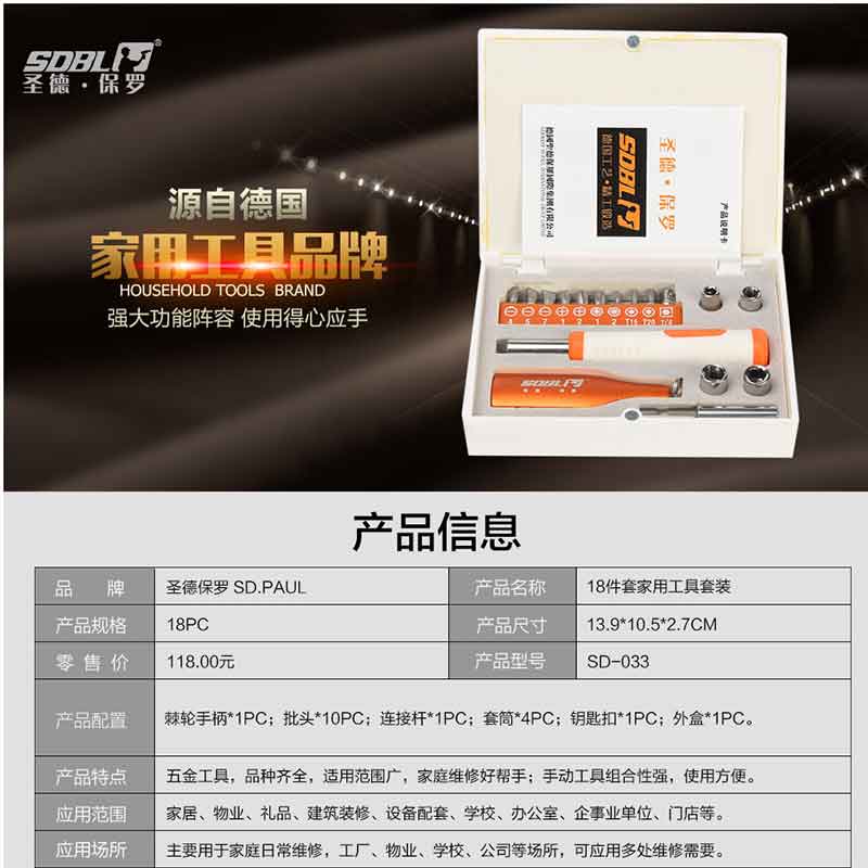 圣德保羅(SDBL) SD-033 工具箱18件套迷你型家用工具組合套裝