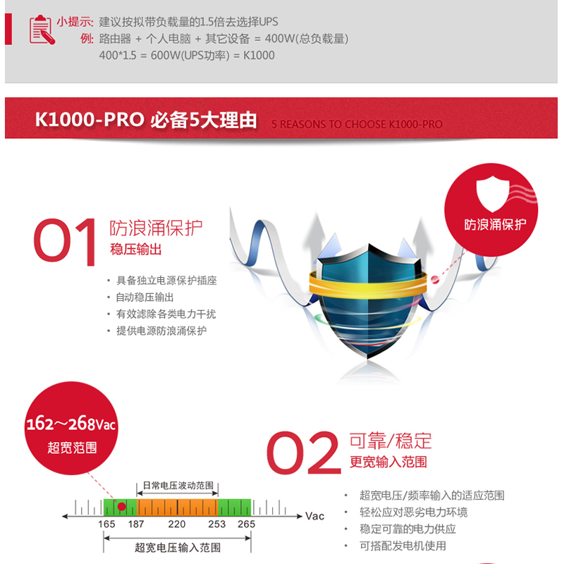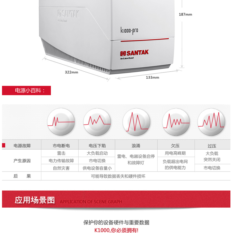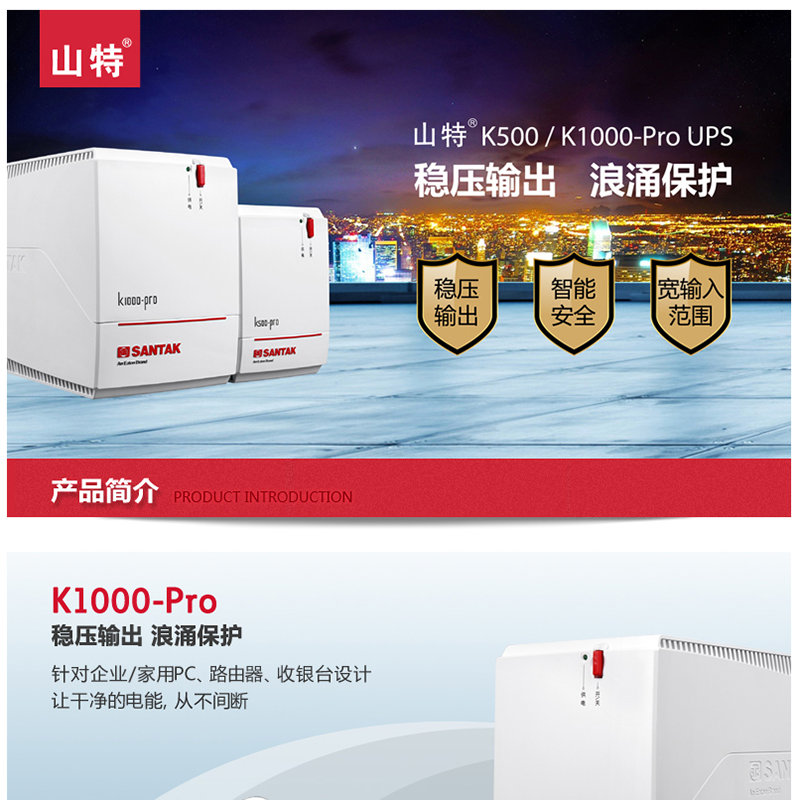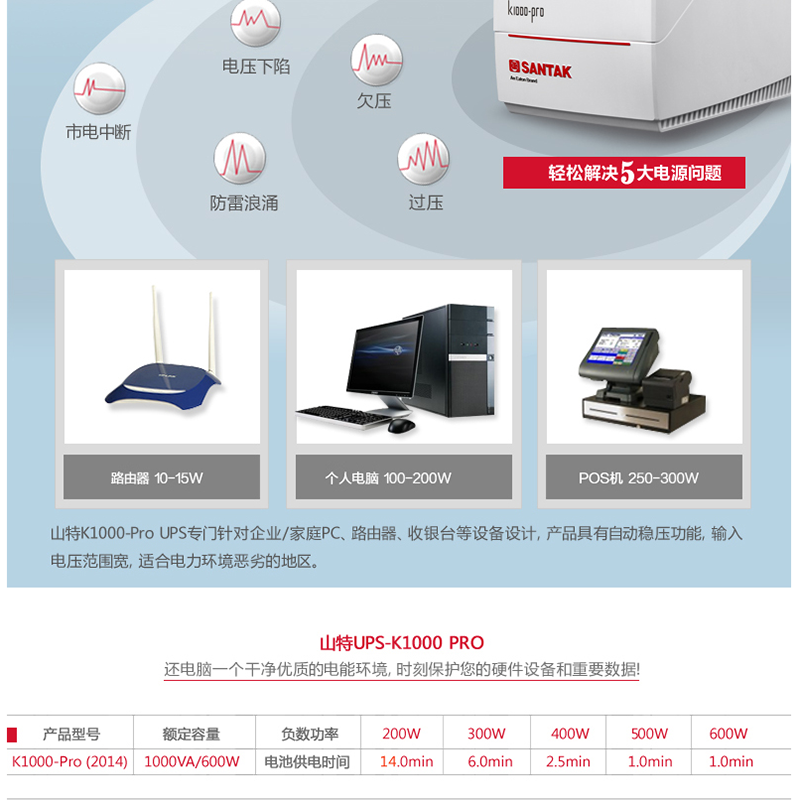 山特(SANTAK) K1000-pro 后備式UPS不間斷電源1000VA/600W