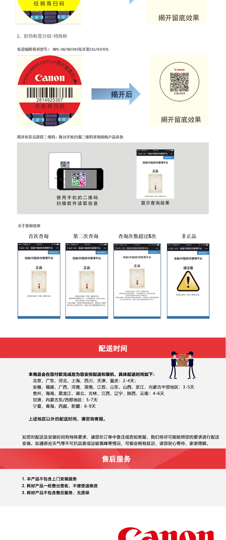 辦公耗材類:如送達(dá)的商品外包裝已經(jīng)被打開,請您拒收商品。產(chǎn)品使用中出現(xiàn)故障后,將送達(dá)相應(yīng)廠商指定的檢測中心進(jìn)行檢驗,依據(jù)檢測中心出具的相關(guān)《產(chǎn)品檢測報告》確定解決方案,檢測中心的《產(chǎn)品檢測報告》是我們確定更換的唯一標(biāo)準(zhǔn)。