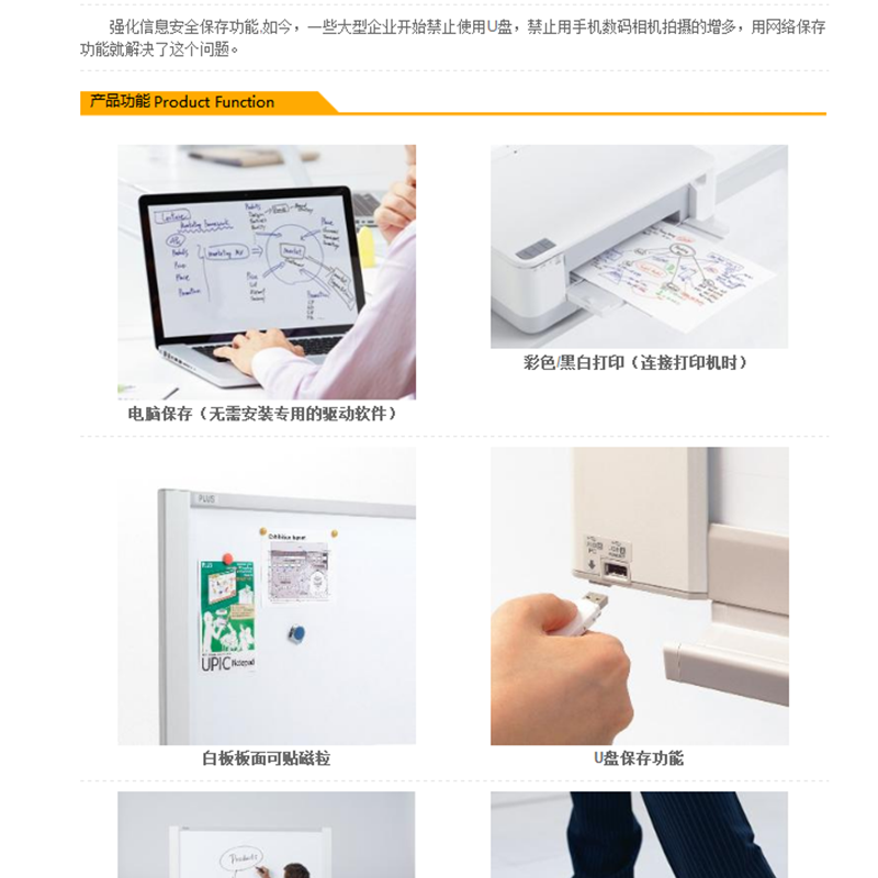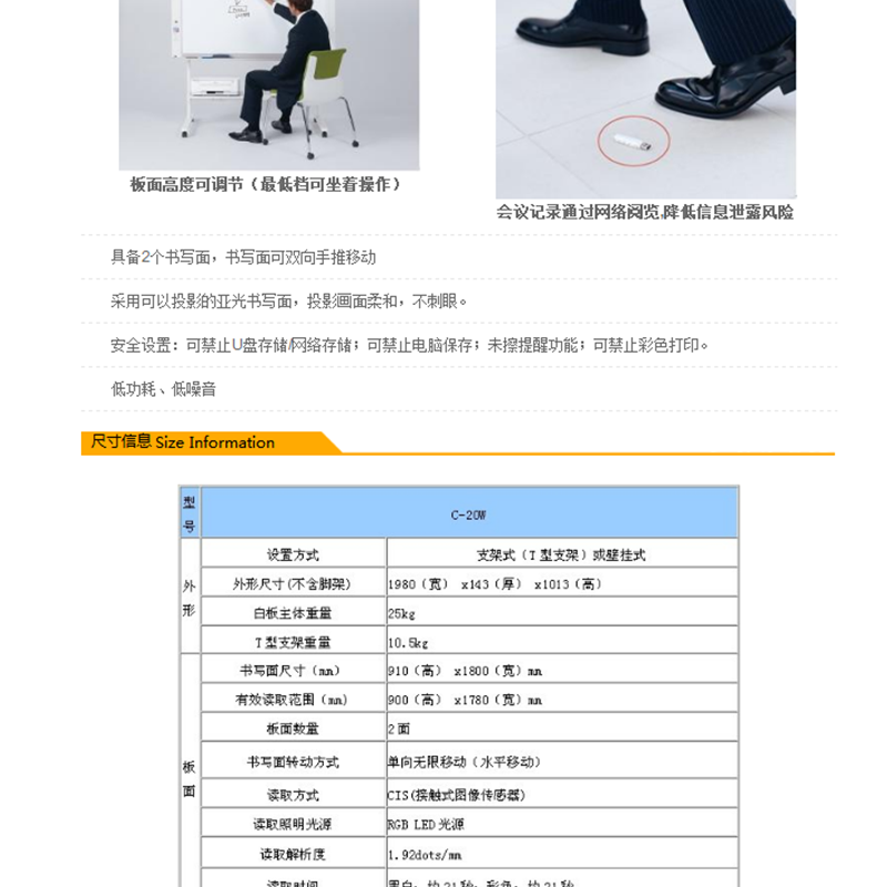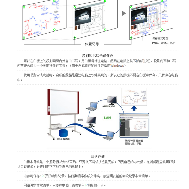 書寫面積:910x1800mm(雙面),書寫+投影,書寫內(nèi)容與投影畫面可通過專用軟件在PC中輕松合成并保存,噴墨打印/可接激光,16色輸出,256色U盤存儲(chǔ),USB插槽,LED光源,帶網(wǎng)絡(luò)接口 ?