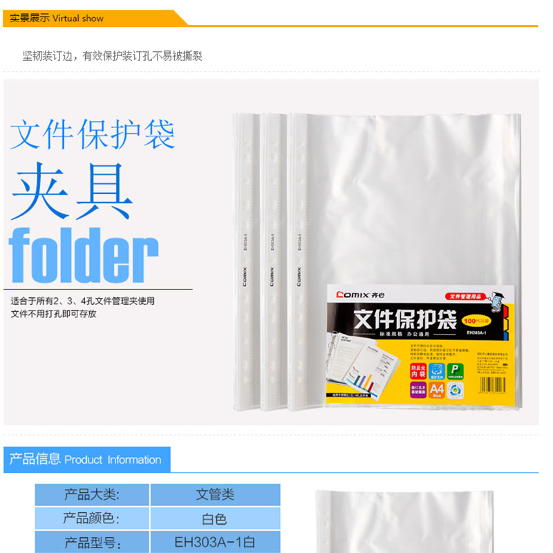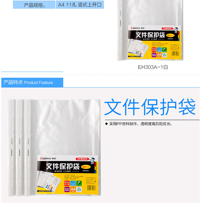 齊心(COMIX) EH303A-1 A4 11孔文件保護(hù)袋0.04mm 100個(gè)/包