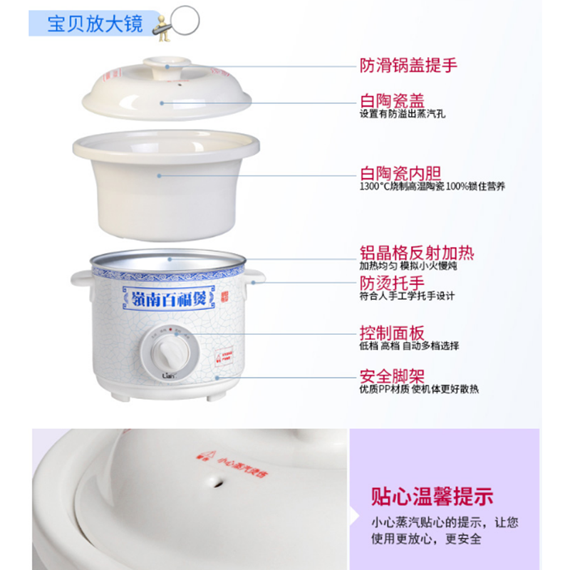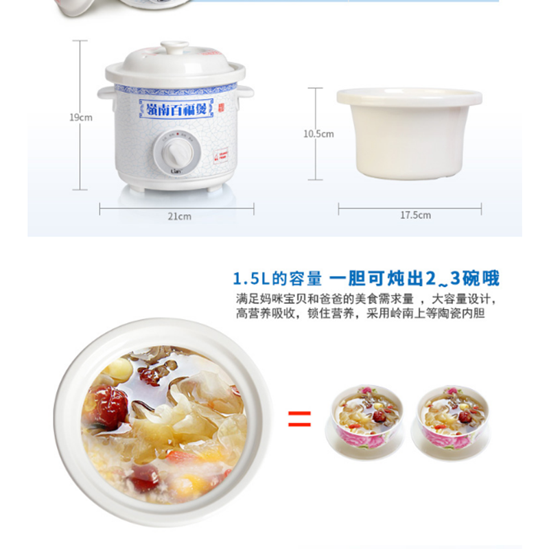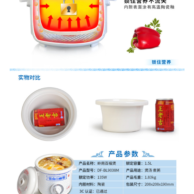 聯(lián)創(chuàng)(Lianc) DF-BL9038M 嶺南百福煲 陶瓷電燉盅養(yǎng)生鍋 容量1.5升