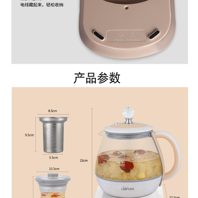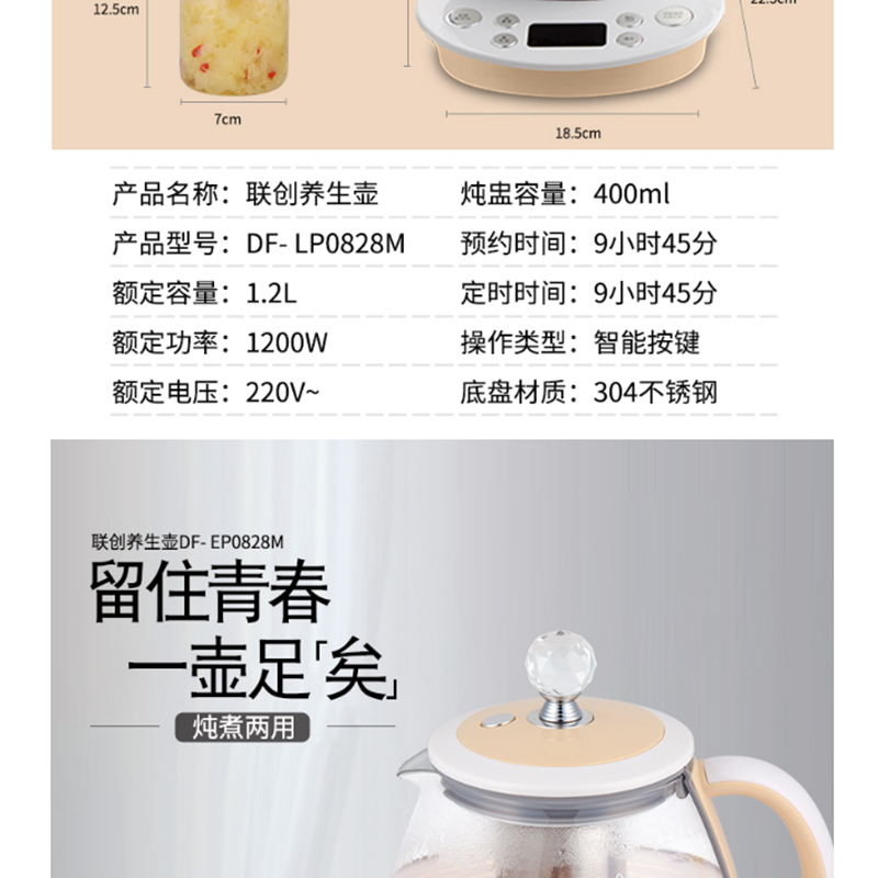 聯(lián)創(chuàng)(Lianc) DF-EP0828M 多功能電熱水壺 燕窩養(yǎng)生壺 1.2L