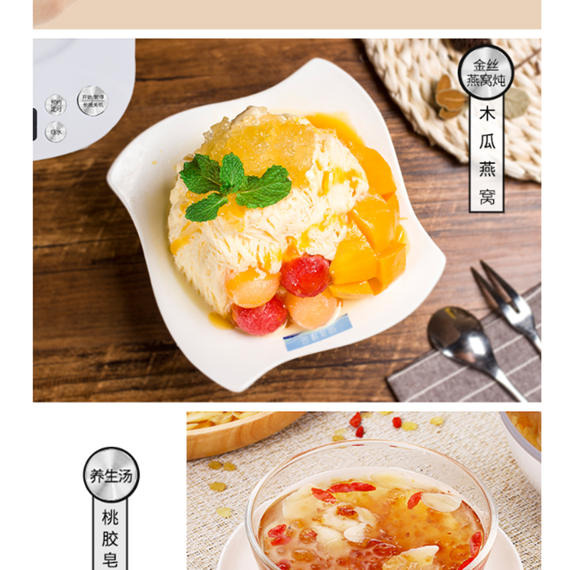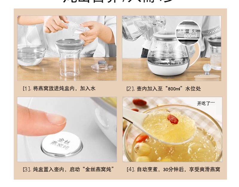 底盤采用ABS工程塑料加大屏幕液晶屏,壺身采用高硼硅材質(zhì),食材一目了然 ?