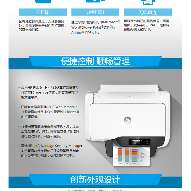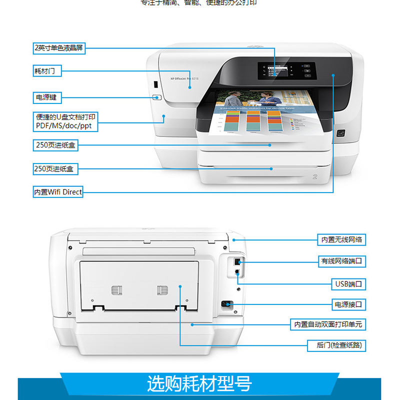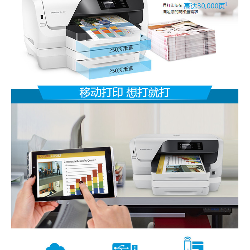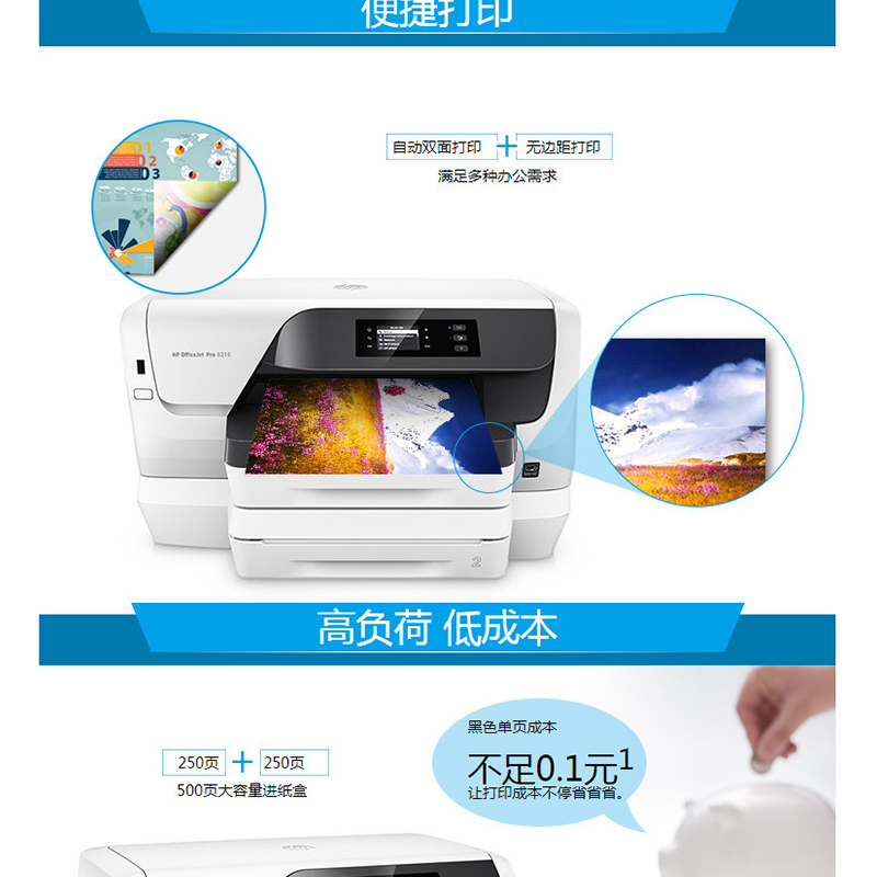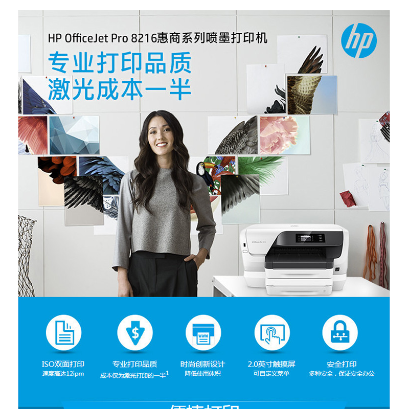 惠普(HP) Pro 8216 彩色噴墨打印機(jī)(自動雙面,無線打?。?