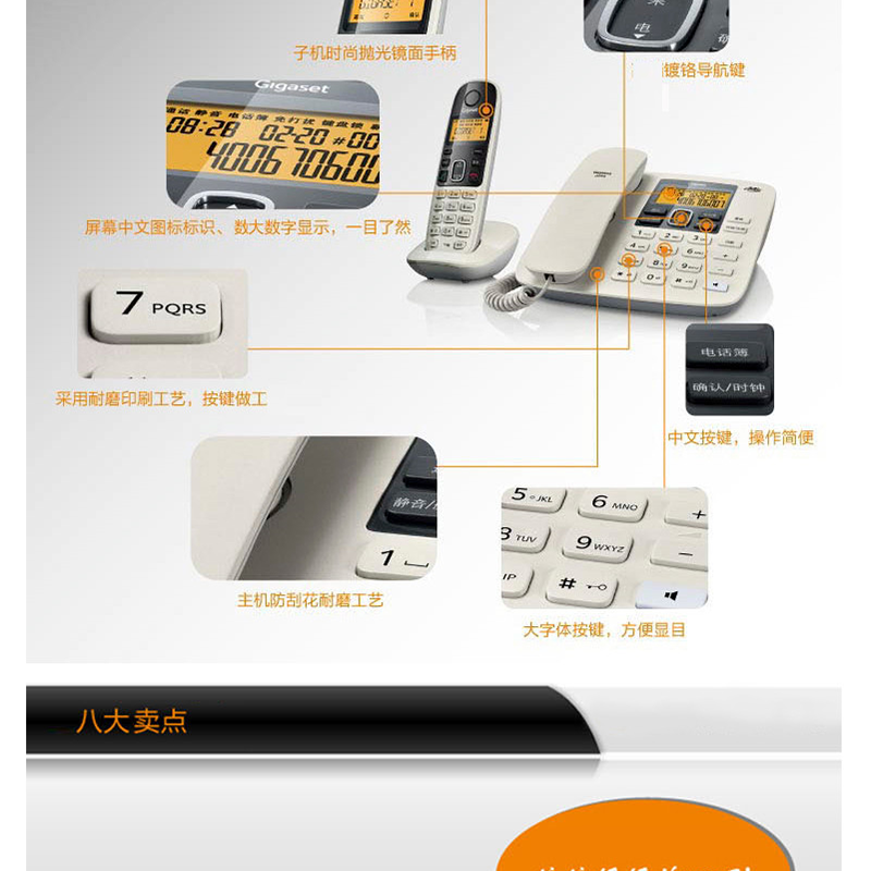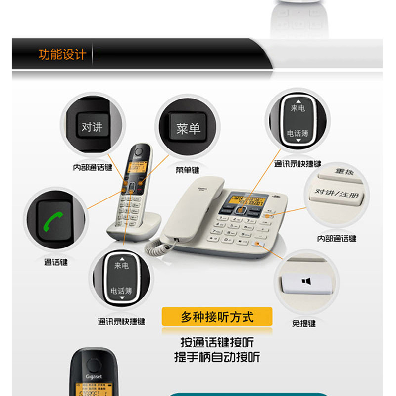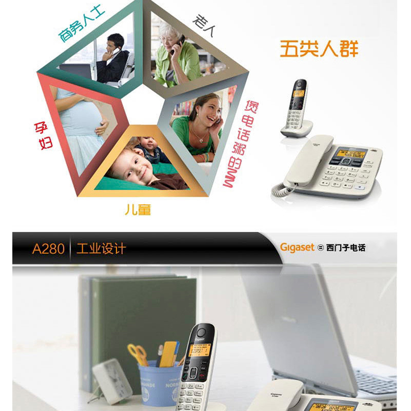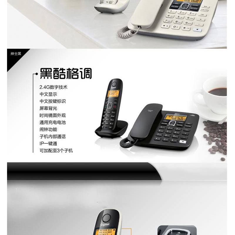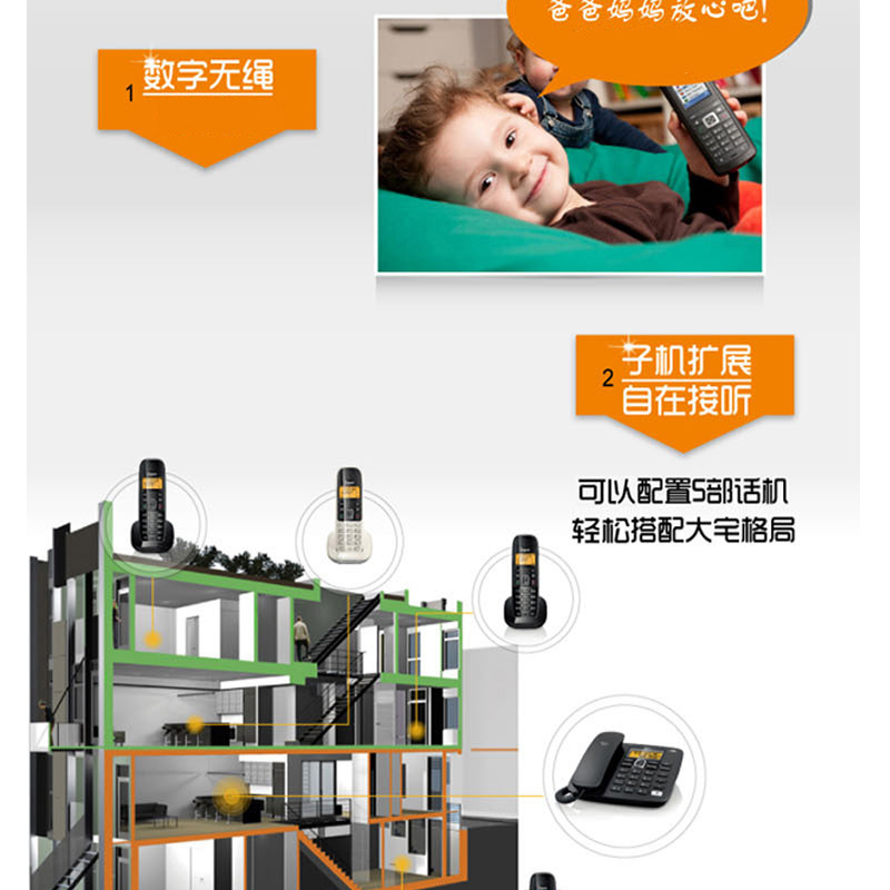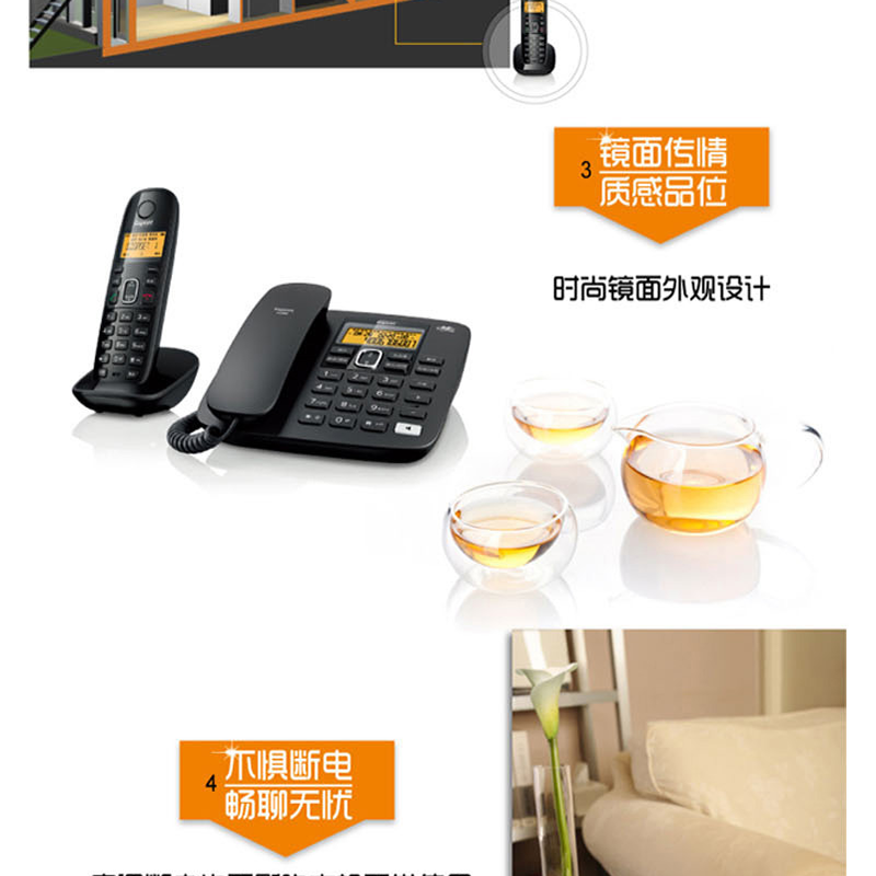 集怡嘉(Gigaset) A180 原西門子 電話機數(shù)字無繩電話辦公固定電話家用無線固話座機子母機 黑色一拖一