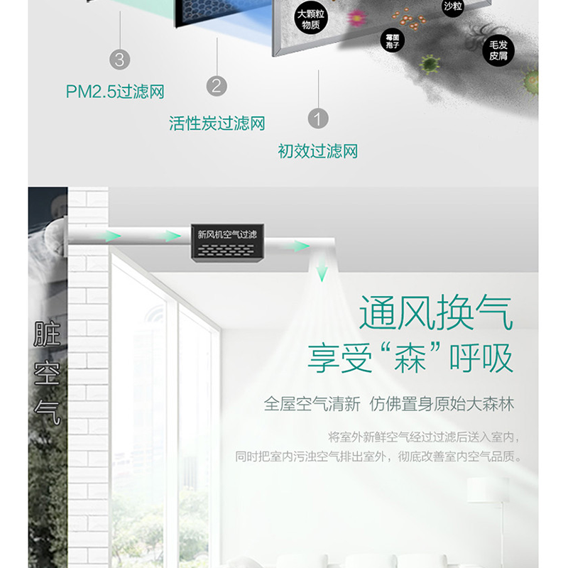 美的(Midea) XKJG250/QR 新風(fēng)機(jī)中央空調(diào)室內(nèi)新風(fēng)系統(tǒng)
