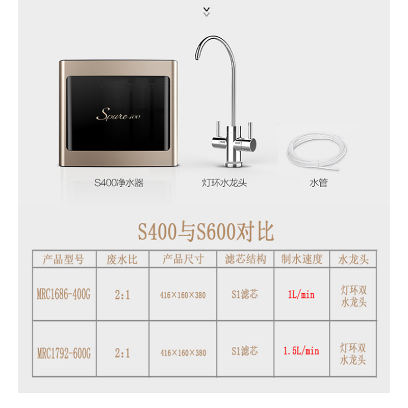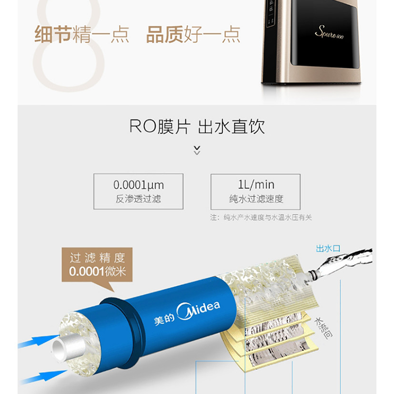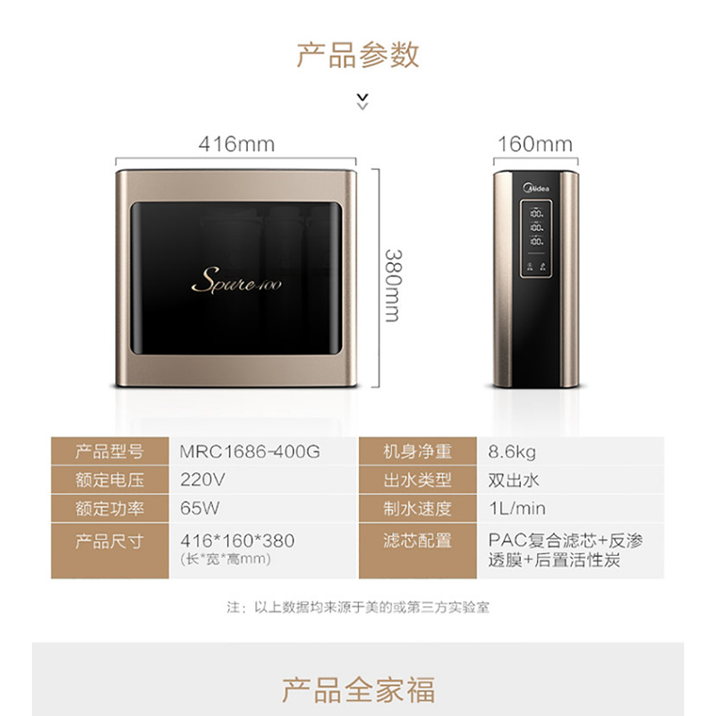 美的(Midea) MRC1686-400G 凈水器家用廚房?jī)羲髦憋嫙o罐大通量?jī)羲鱏400線下商場(chǎng)同款