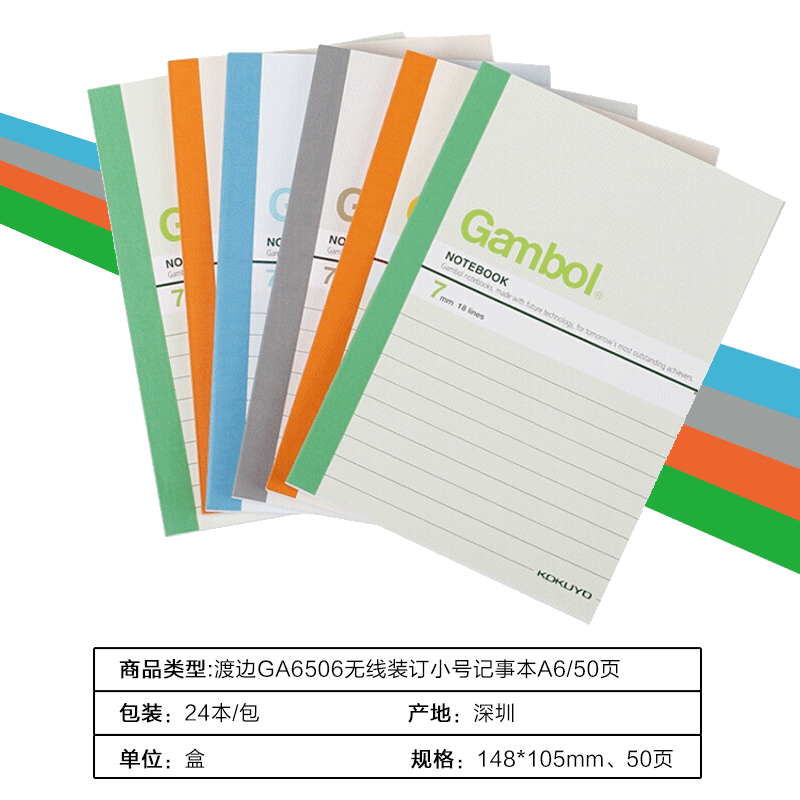 渡邊(Gambol) GA6506 無線裝訂本 小號記事本A6/50頁 24本/包 (24本裝)