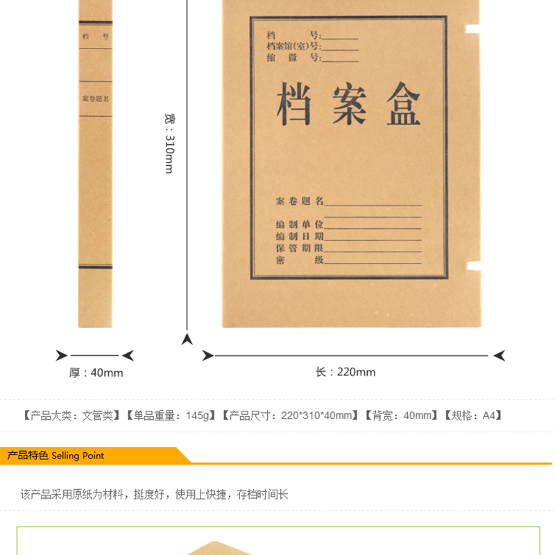 得力(deli) 5924 純木漿牛皮紙久存耐用檔案盒 40mm