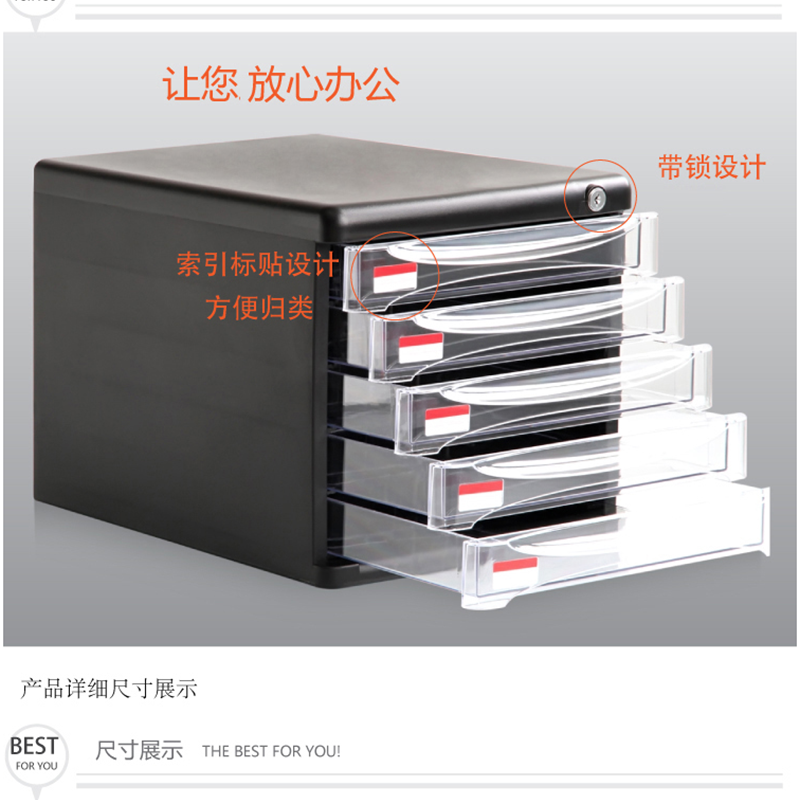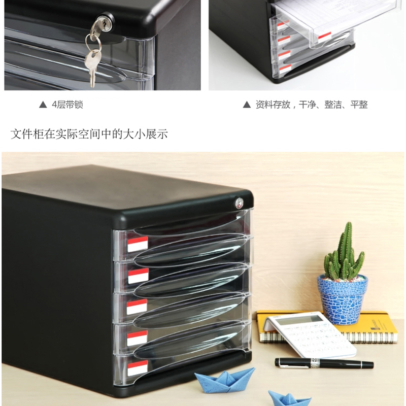 得力(deli) 9795 五層塑料文件柜(透明抽屜帶鎖)黑色
