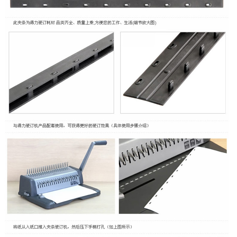得力(deli) 3829 10孔裝訂夾條 15mm 100支/盒 可裝訂150頁(yè)(藍(lán)色)