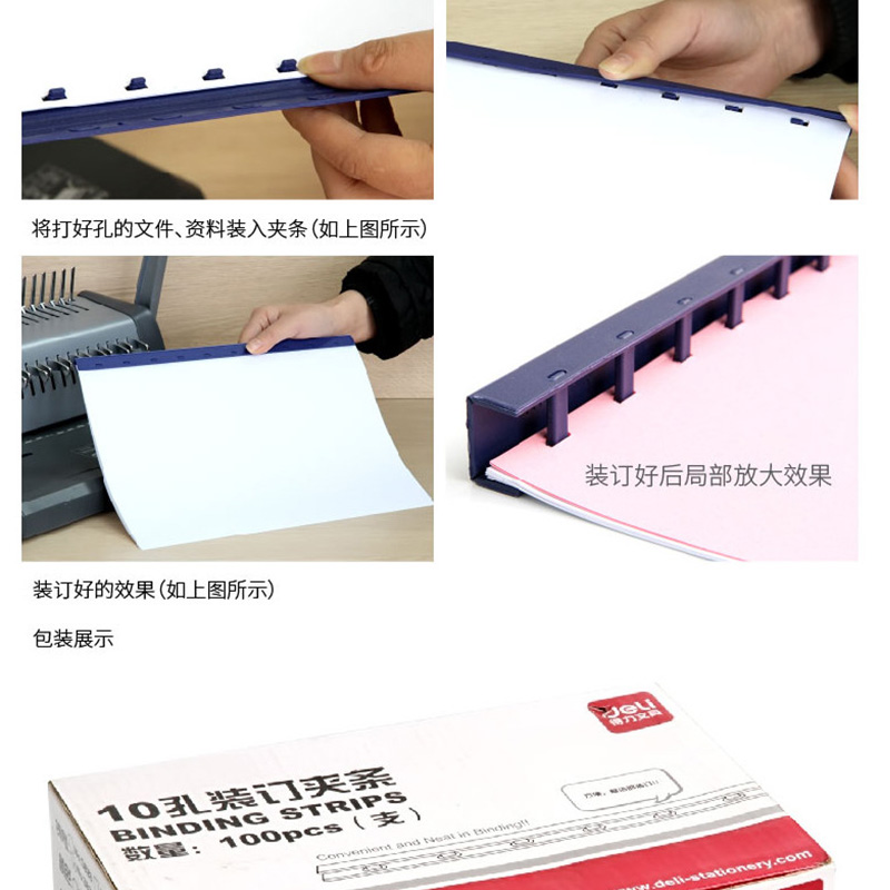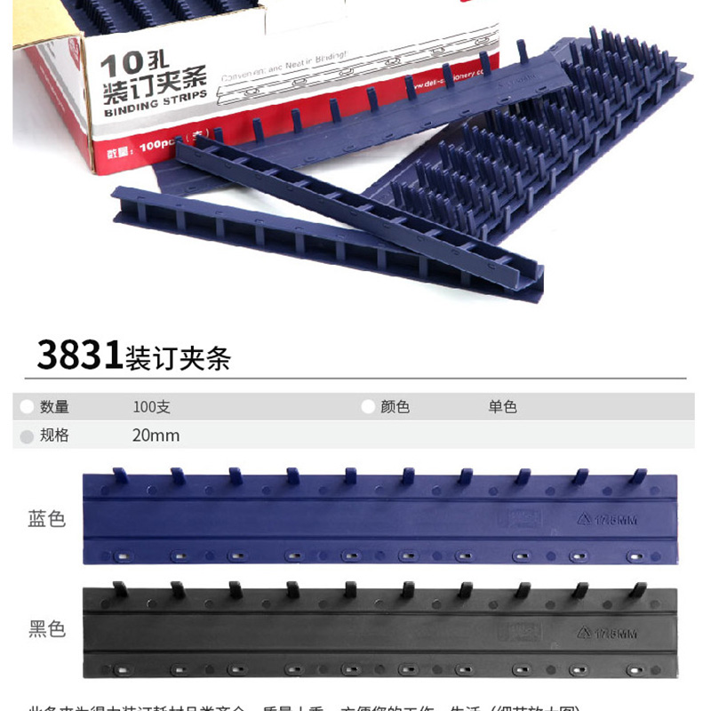 得力(deli) 3831 10孔裝訂夾條 20mm 100支/盒 可裝訂200頁(yè)(黑色)
