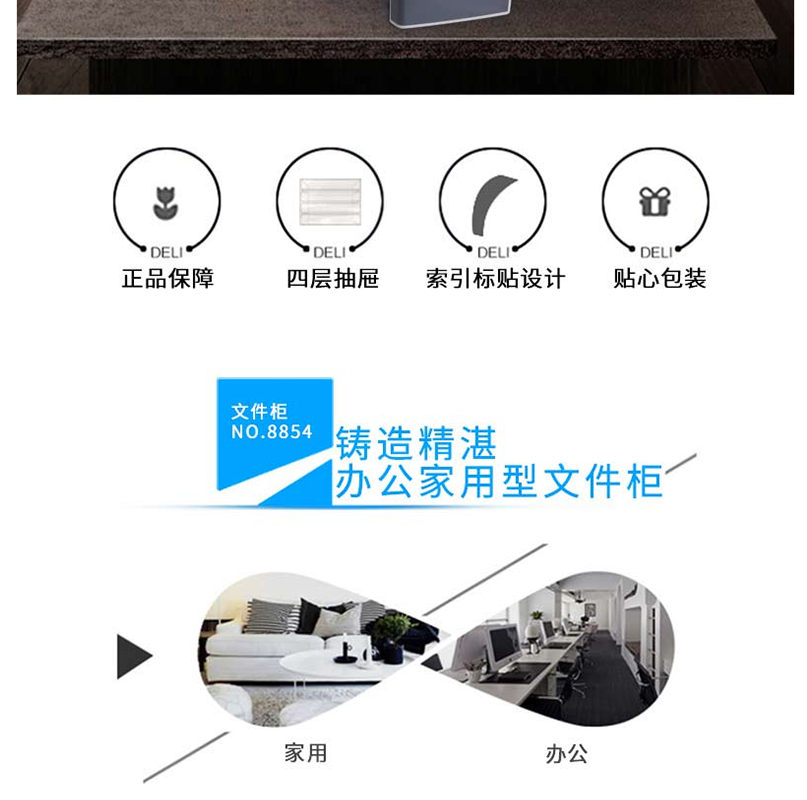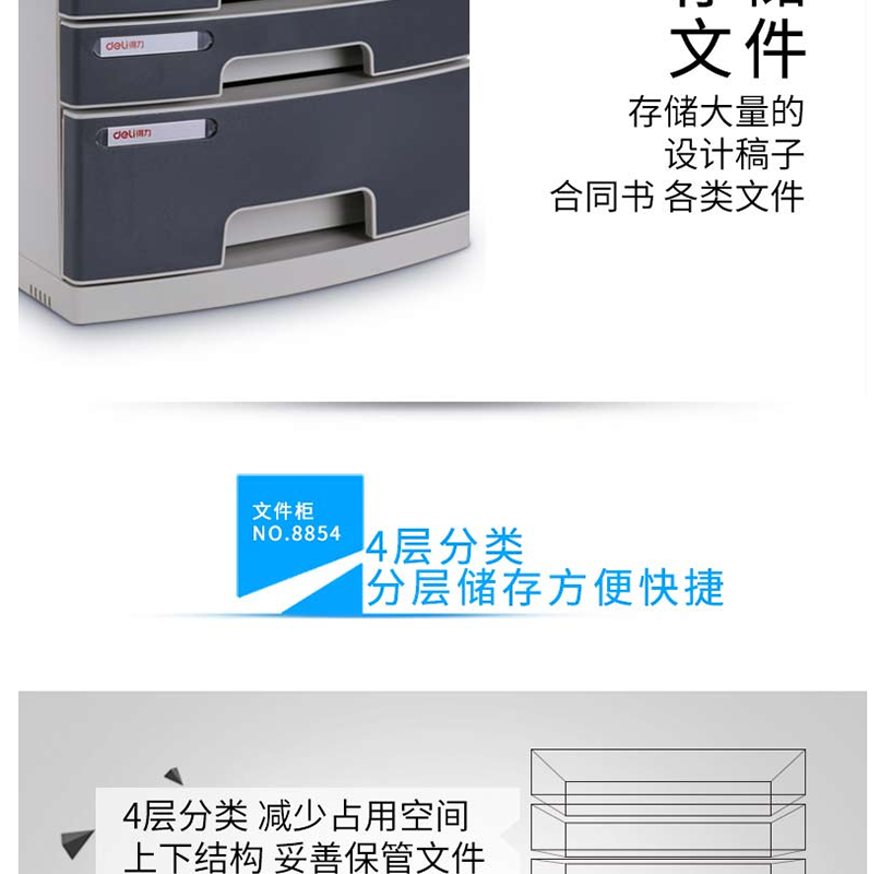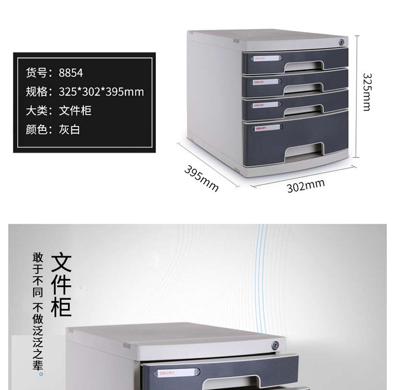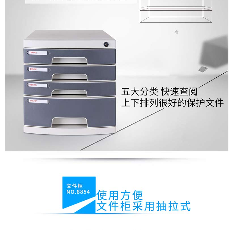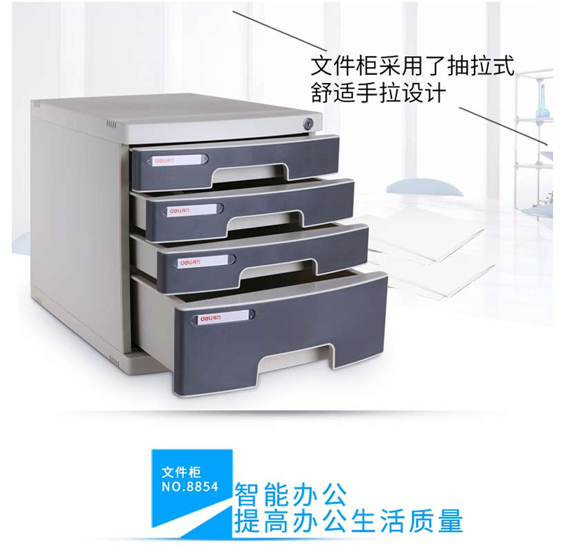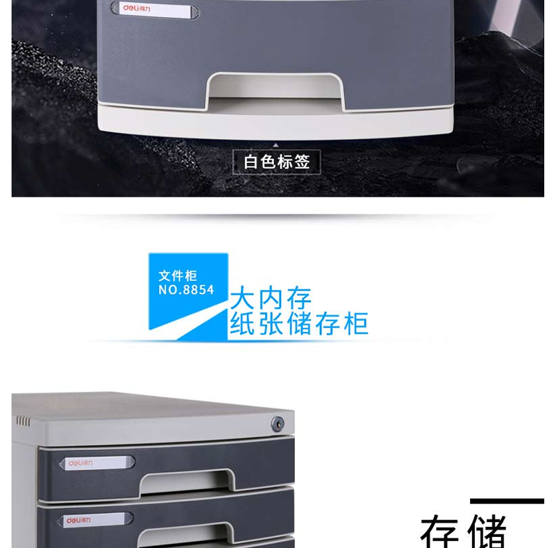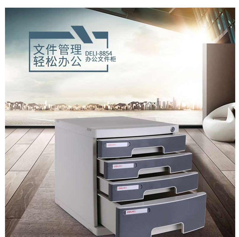 得力(deli) 8854 四層塑料文件柜(帶鎖)灰色