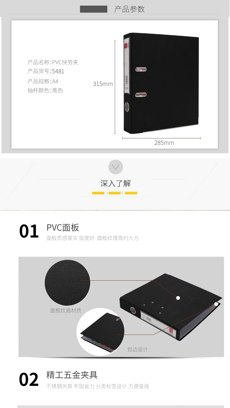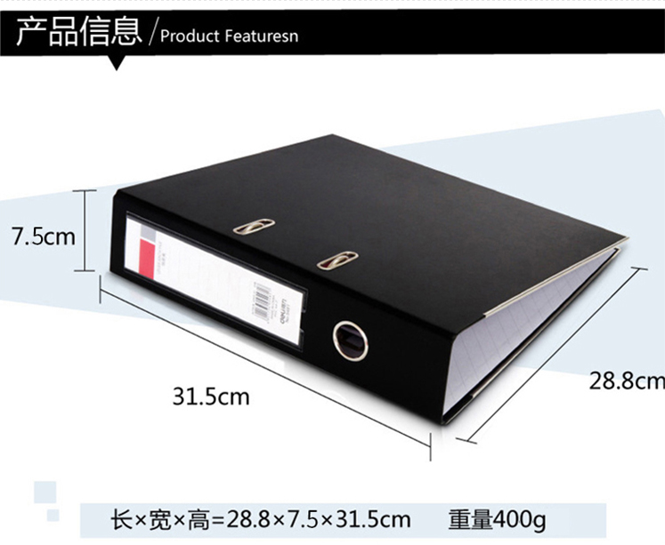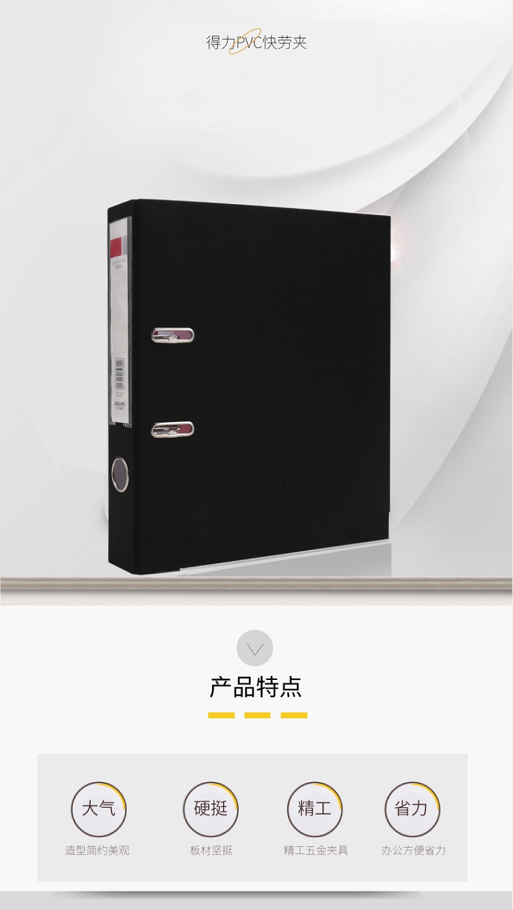 得力(deli) 5481 A4/3英寸PVC快勞夾(黑色)