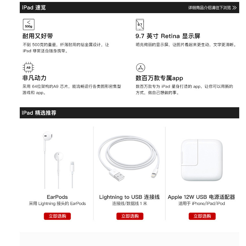 蘋果 Apple iPad 平板電腦(128G WLAN版/A9 芯片/Retina顯示屏/Touch ID技術 MPGW2CH/A) (銀色)