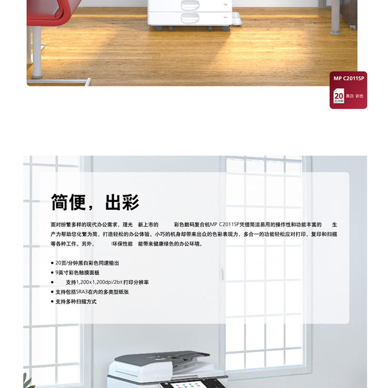 理光(Ricoh) MPC2011SP 彩色激光一體機(jī) A3多功能復(fù)合機(jī)(打印/復(fù)印/掃描) (雙紙盒)
